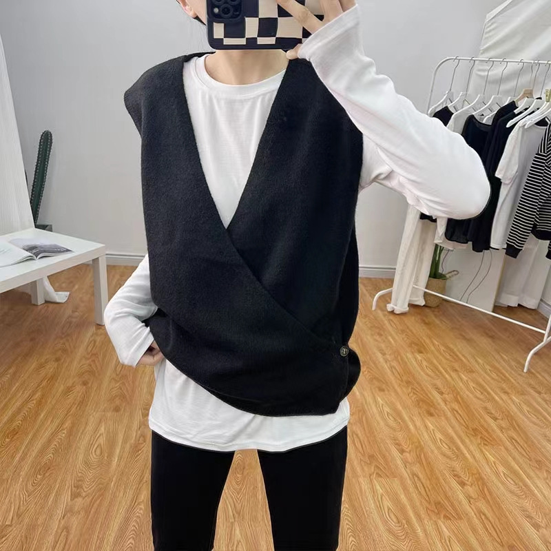 불규칙한 스웨터 조끼 여성의 봄과 가을 새로운 느슨한 슬리밍 간단한 V-넥 민소매 연령 감소 한국식 말 클립