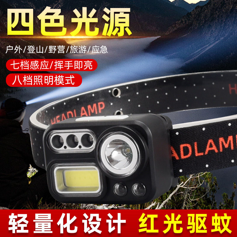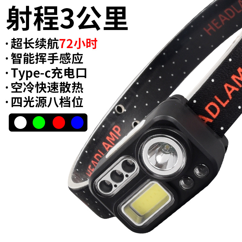 4 색 미니 다기능 야외 유도 전조등 헤드 장착 강한 조명 조명 램프 롱 내구 낚시 헤드 러닝 램프