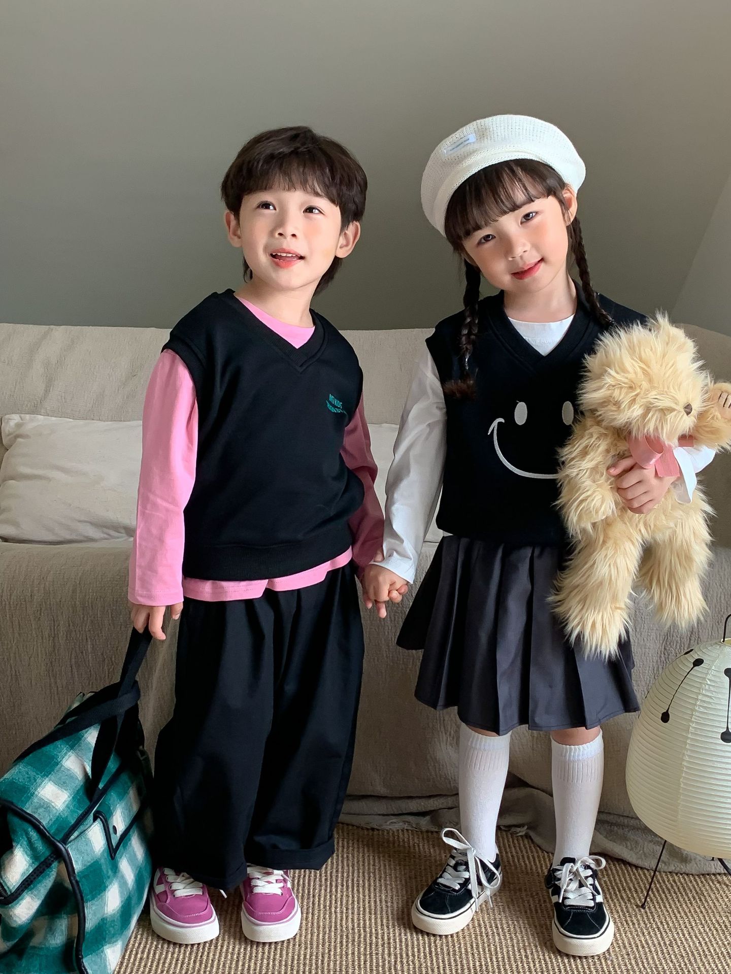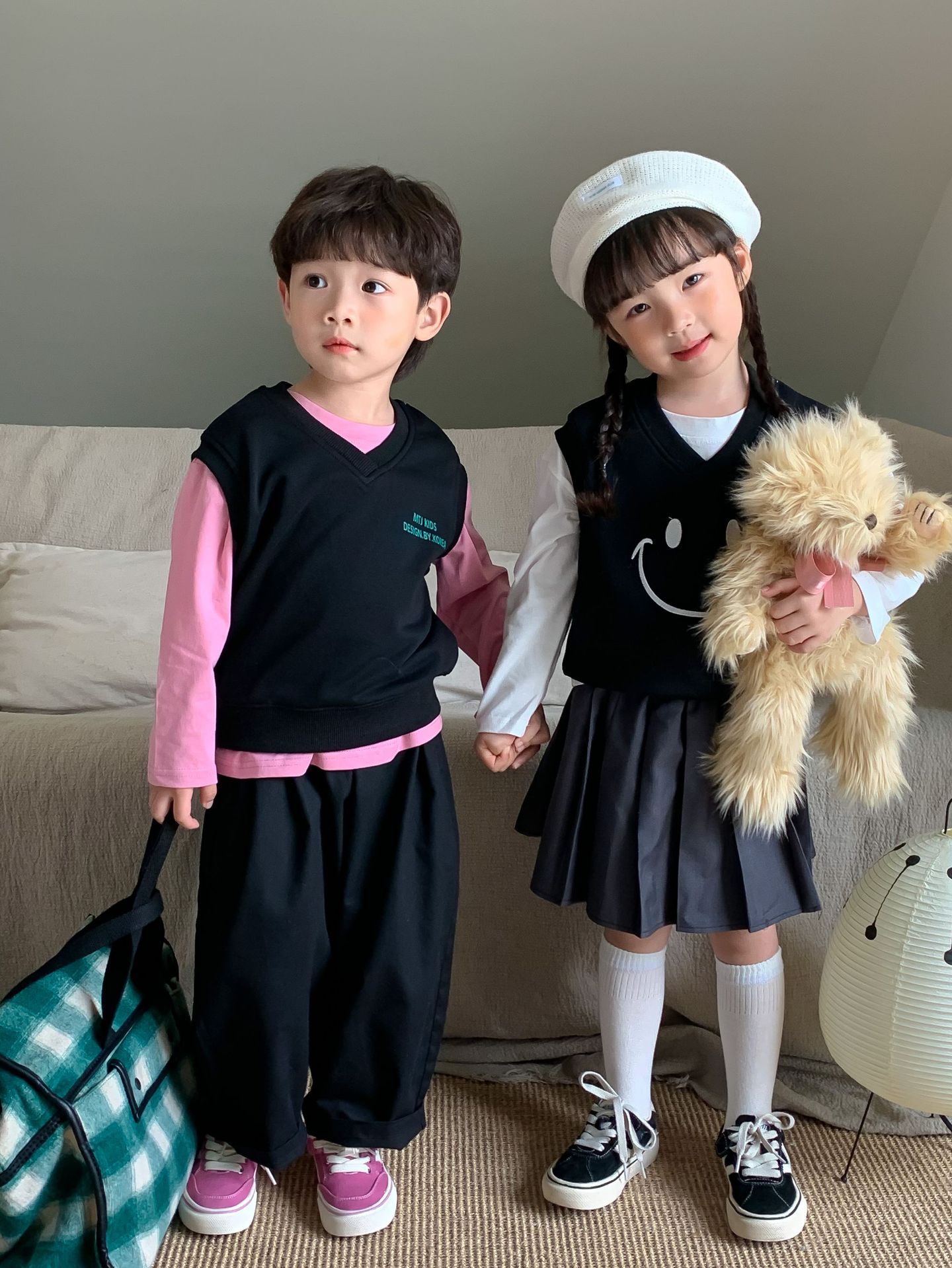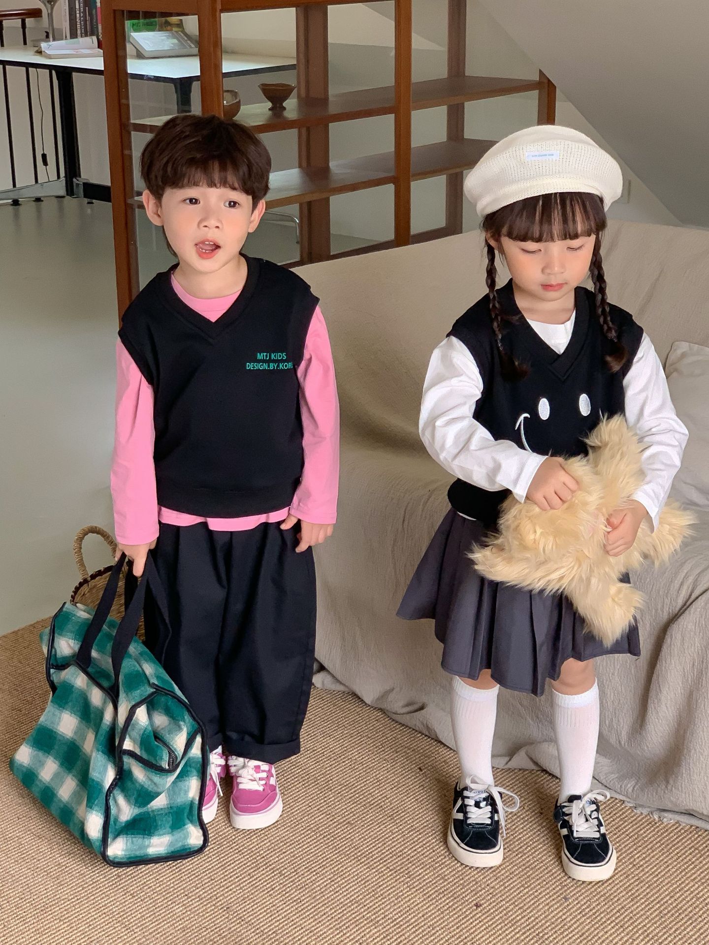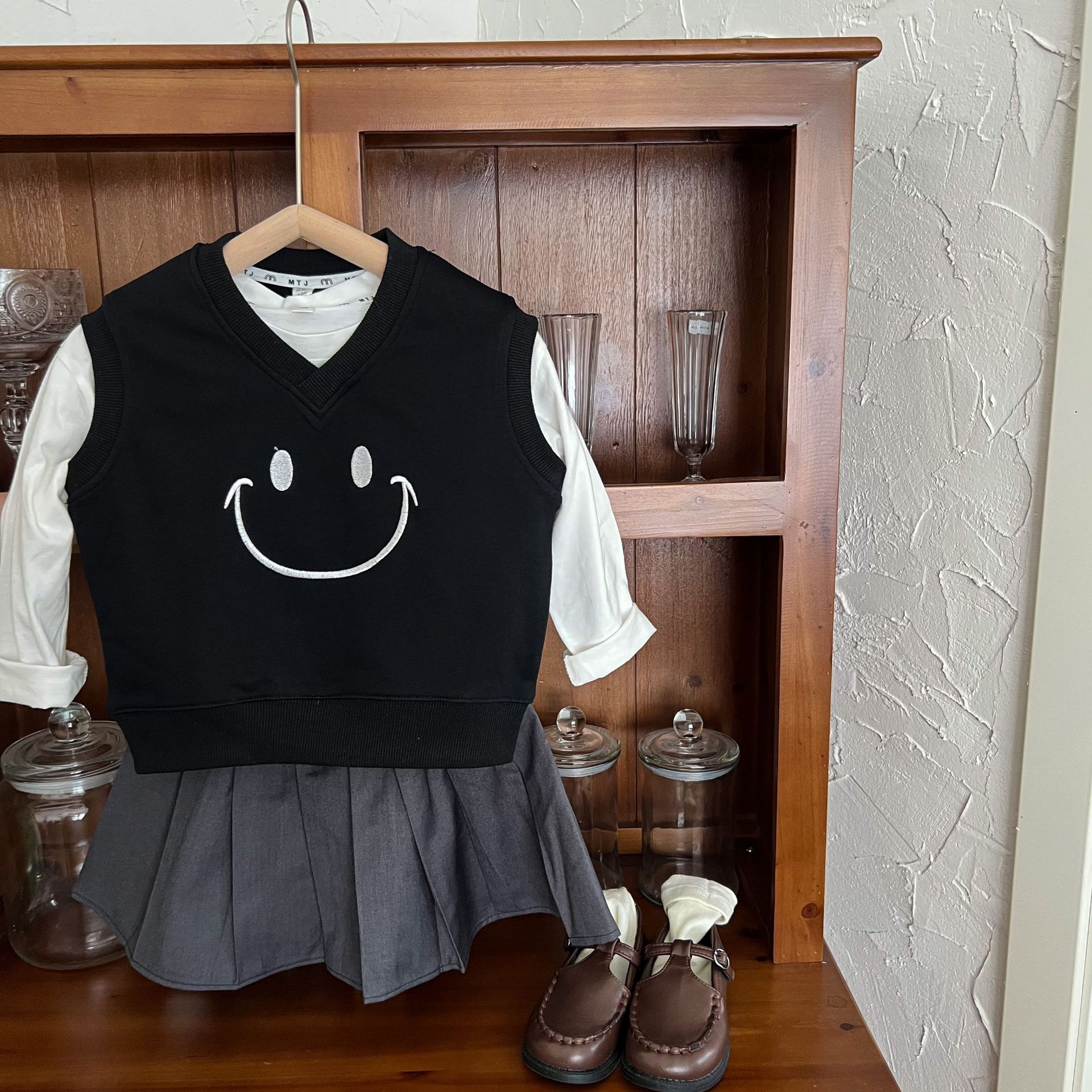 밀 필드 시즌 2023 봄과 가을 새로운 한국 스타일 아동복 소녀의 대학 스타일 플리츠 스커트 어린이 스커트 짧은 치마스토어 가기