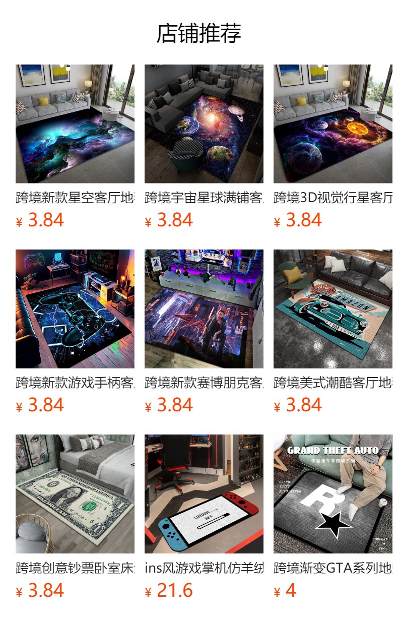 크로스 보더 게임 CD 거실 카펫 E-스포츠실 과학 및 기술 침대 옆 담요 아마존 티 테이블 담요 입구 매트스토어 가기
