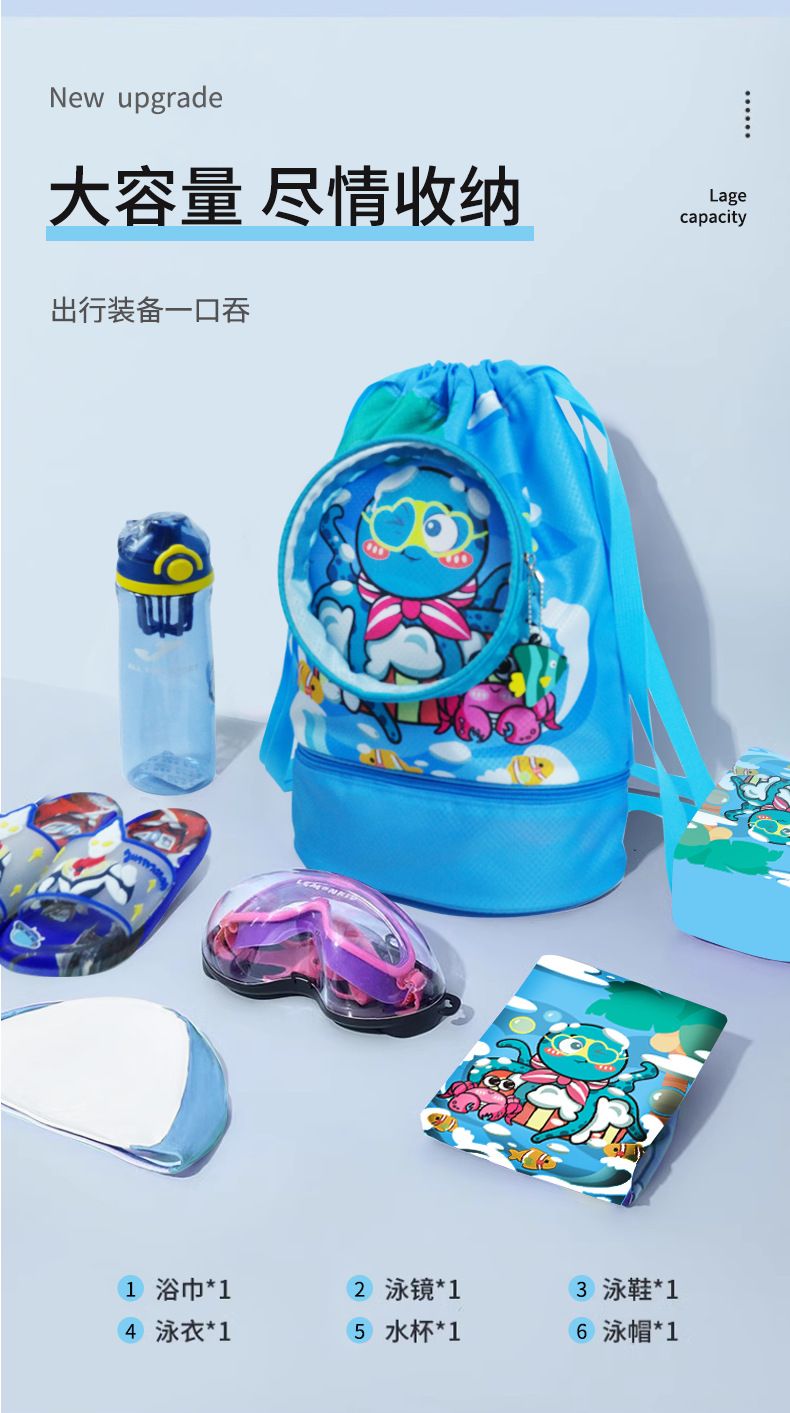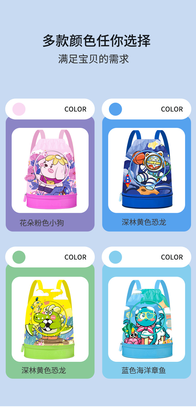 수영 가방 어린이 건조 및 습식 분리 스포츠 휴대용 귀여운 만화 비치 배낭 소년과 소녀를위한 방수 보관 가방