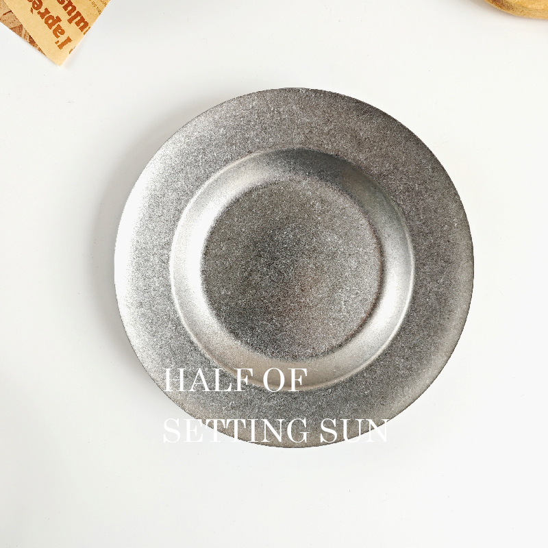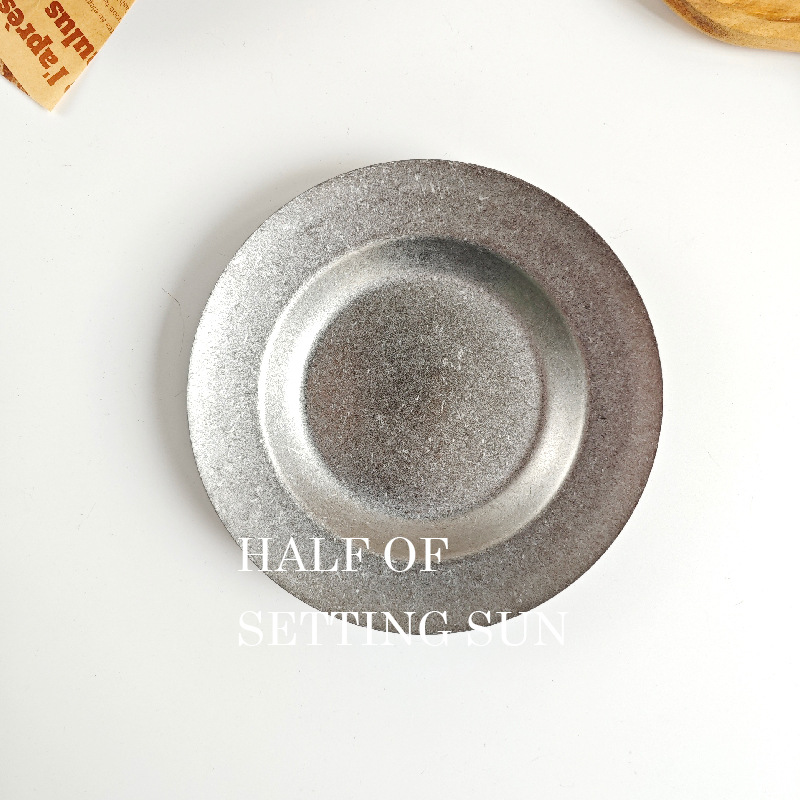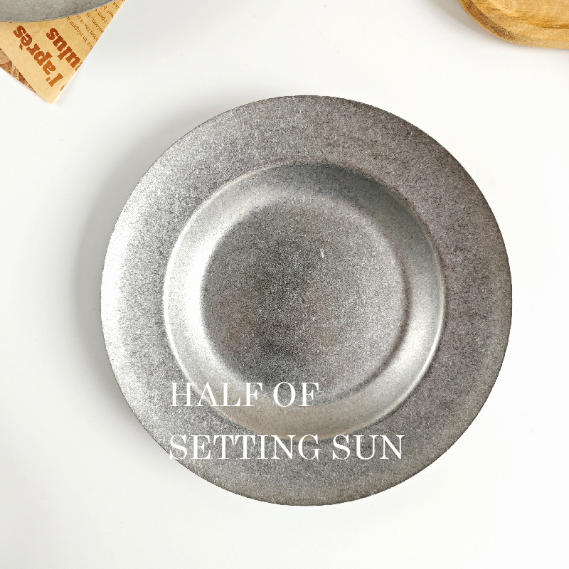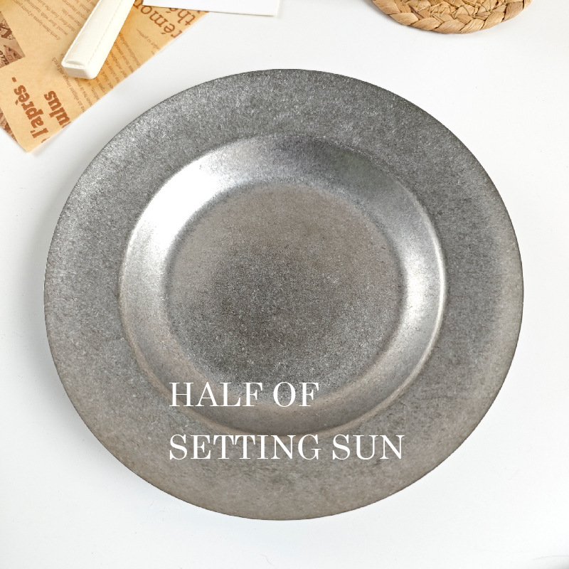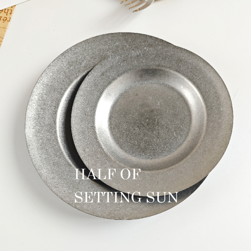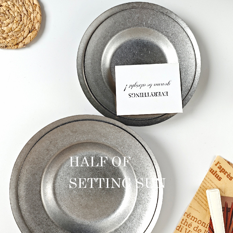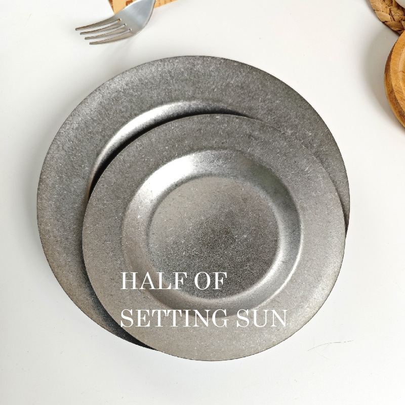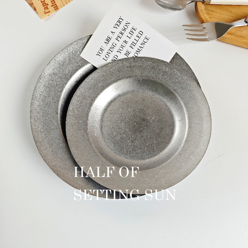 스타일 파스타 플레이트 빈티지 골동품 304 스테인레스 스틸 디너 플레이트 딥 플레이트 야외 캠핑 밀짚 모자 플레이트 라운드 스낵 플레이트