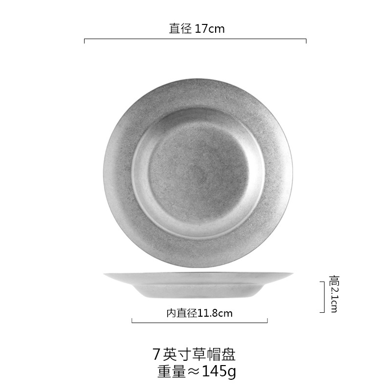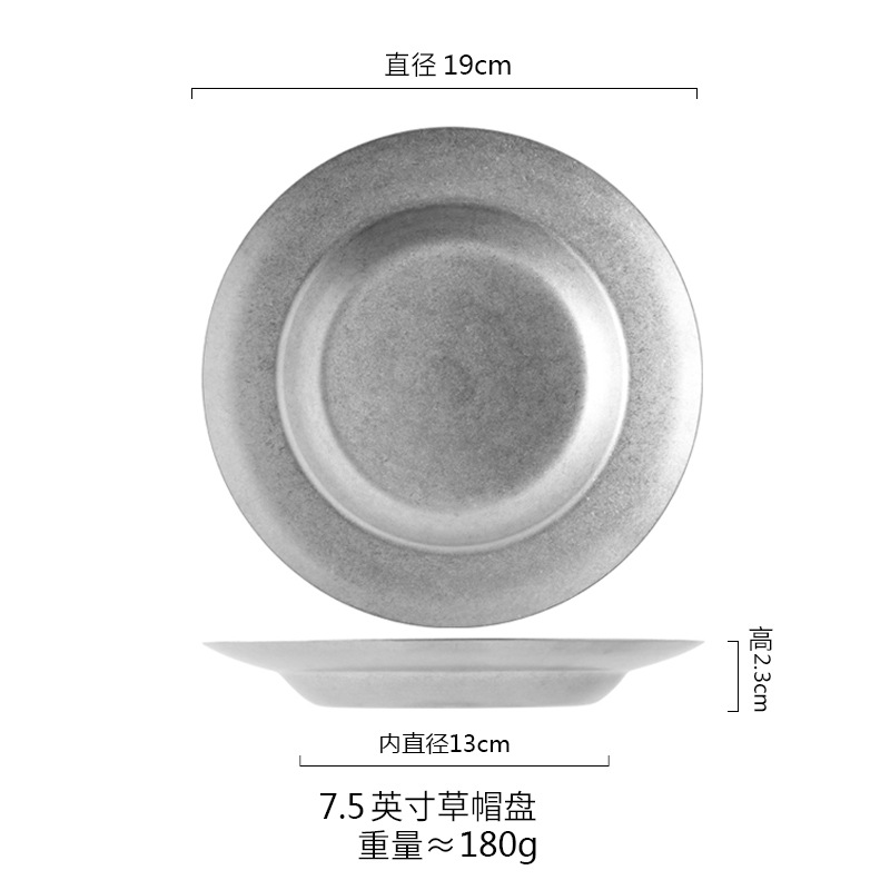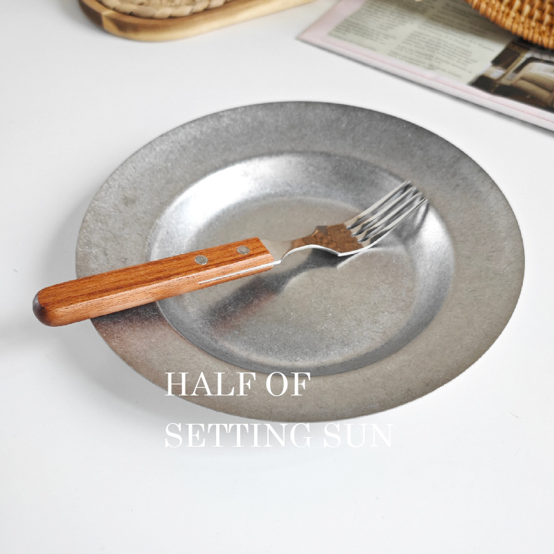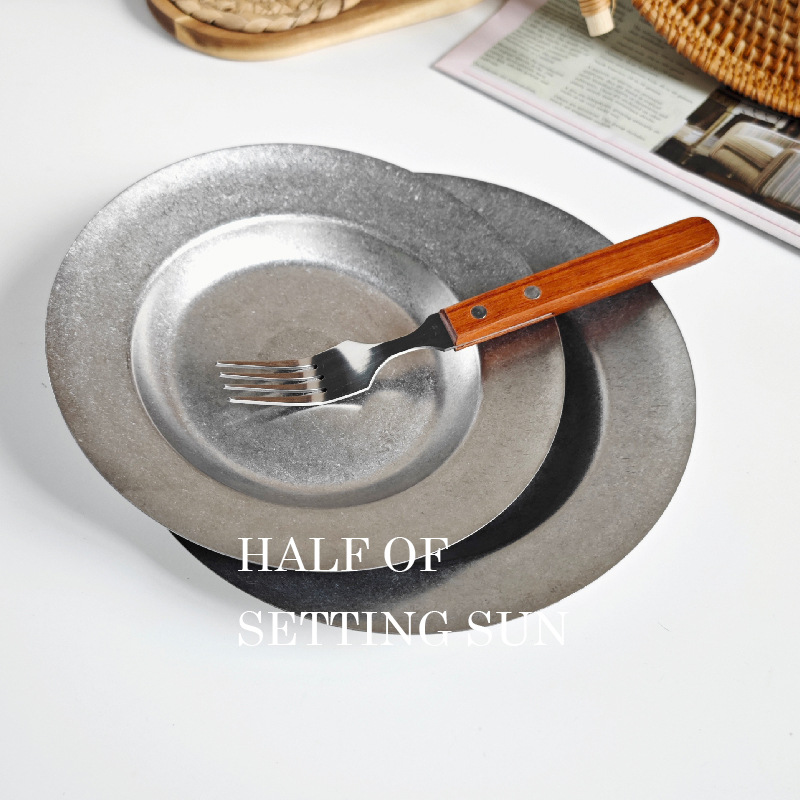스타일 파스타 플레이트 빈티지 골동품 304 스테인레스 스틸 디너 플레이트 딥 플레이트 야외 캠핑 밀짚 모자 플레이트 라운드 스낵 플레이트스토어 가기