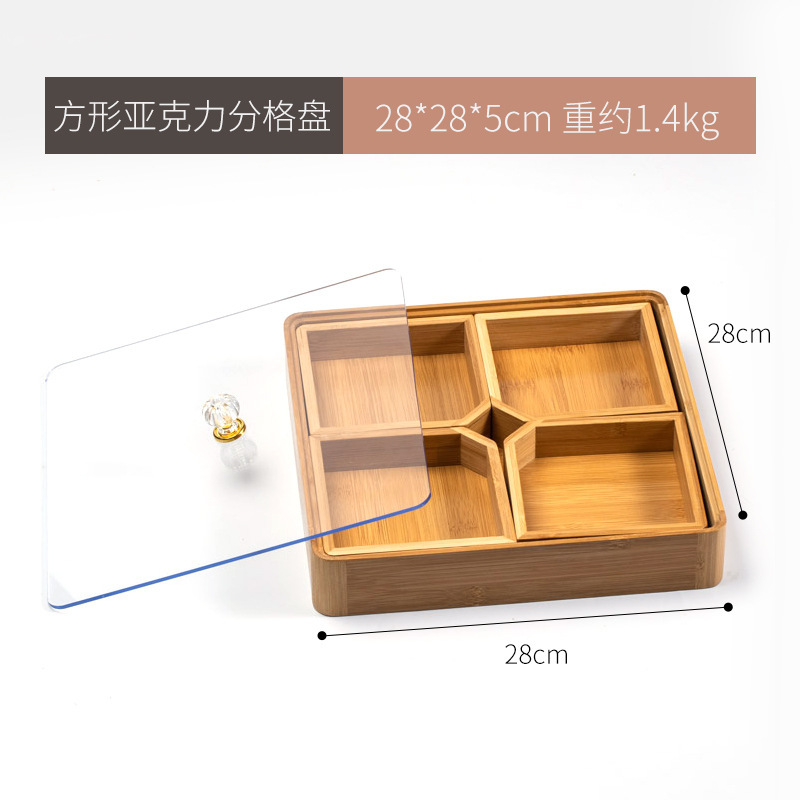 가정용 Jiugongge 디저트 말린 과일 트레이 대나무 보관 상자 냄비 가게 음식 음식 주방 접시 식기 분할 접시