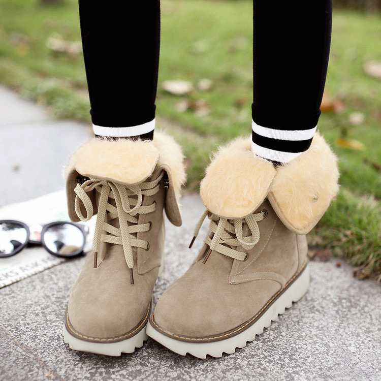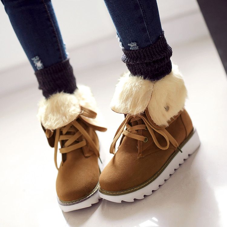 23 가을과 겨울 새로운 여성 신발 레이스 40-43 플러스 사이즈 따뜻한 부츠 라운드 헤드 플랫 스노우 부츠 짧은 부츠