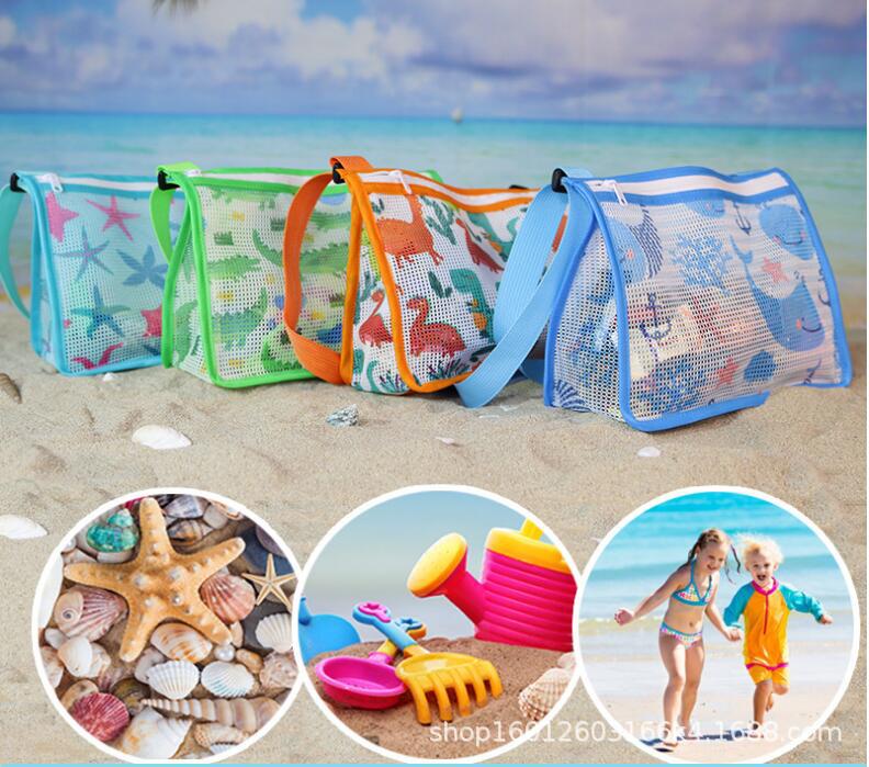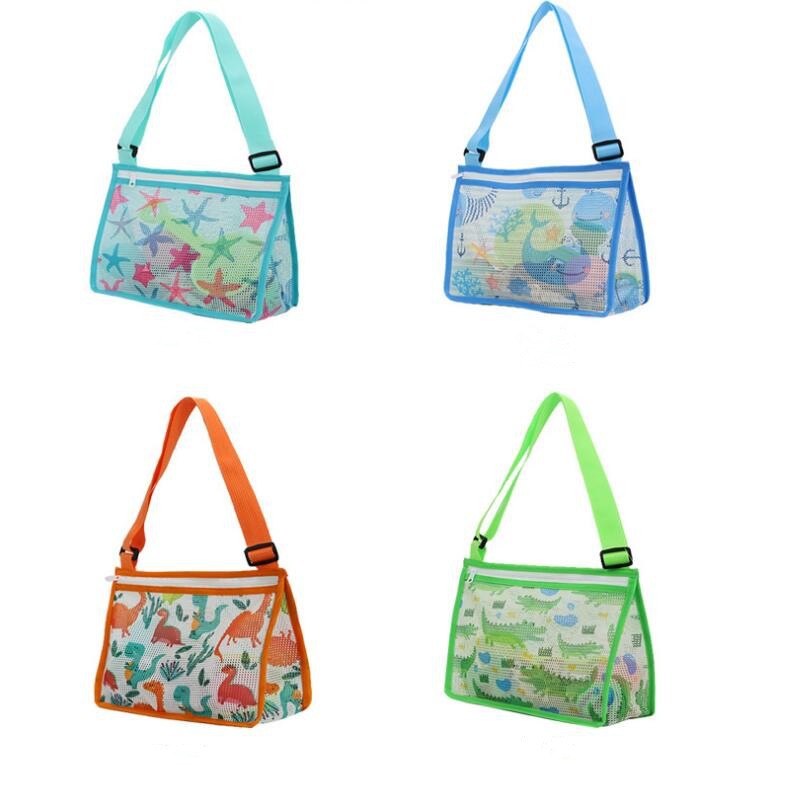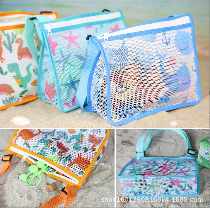 어린이 장난감 가방 어린이 비치 백 새로운 쉘 가방 인쇄 지퍼 스테레오 크로스 바디 메쉬 백스토어 가기