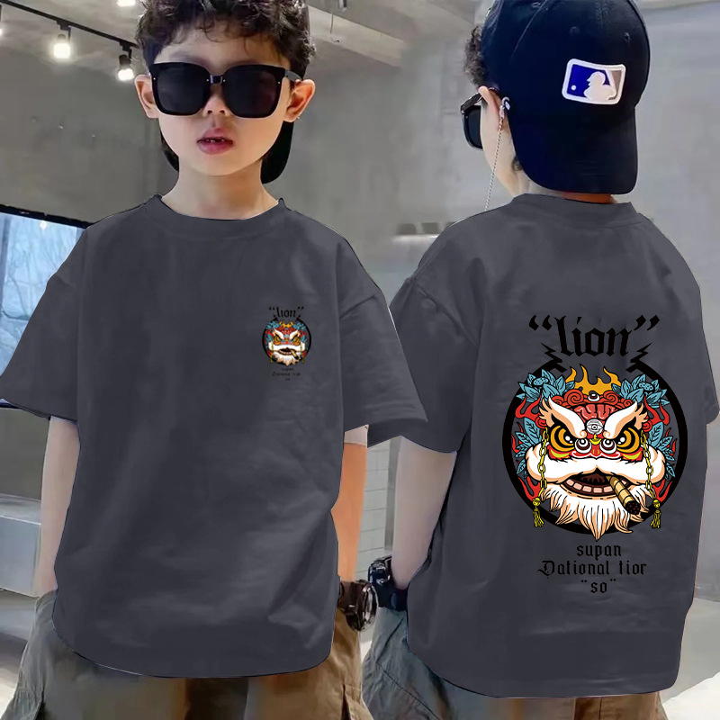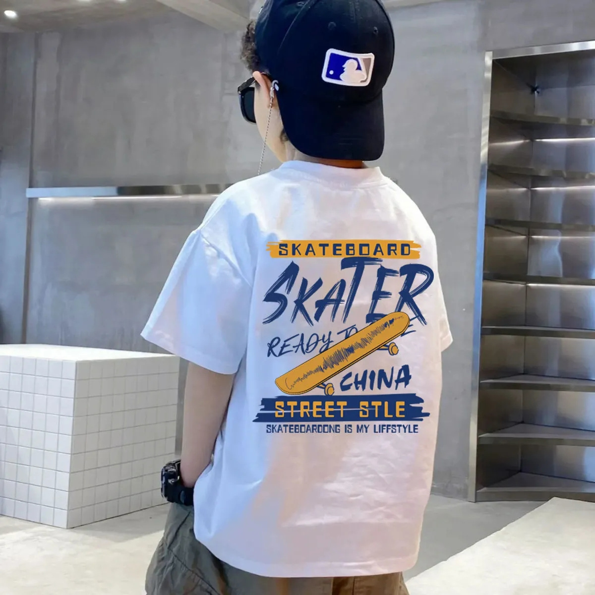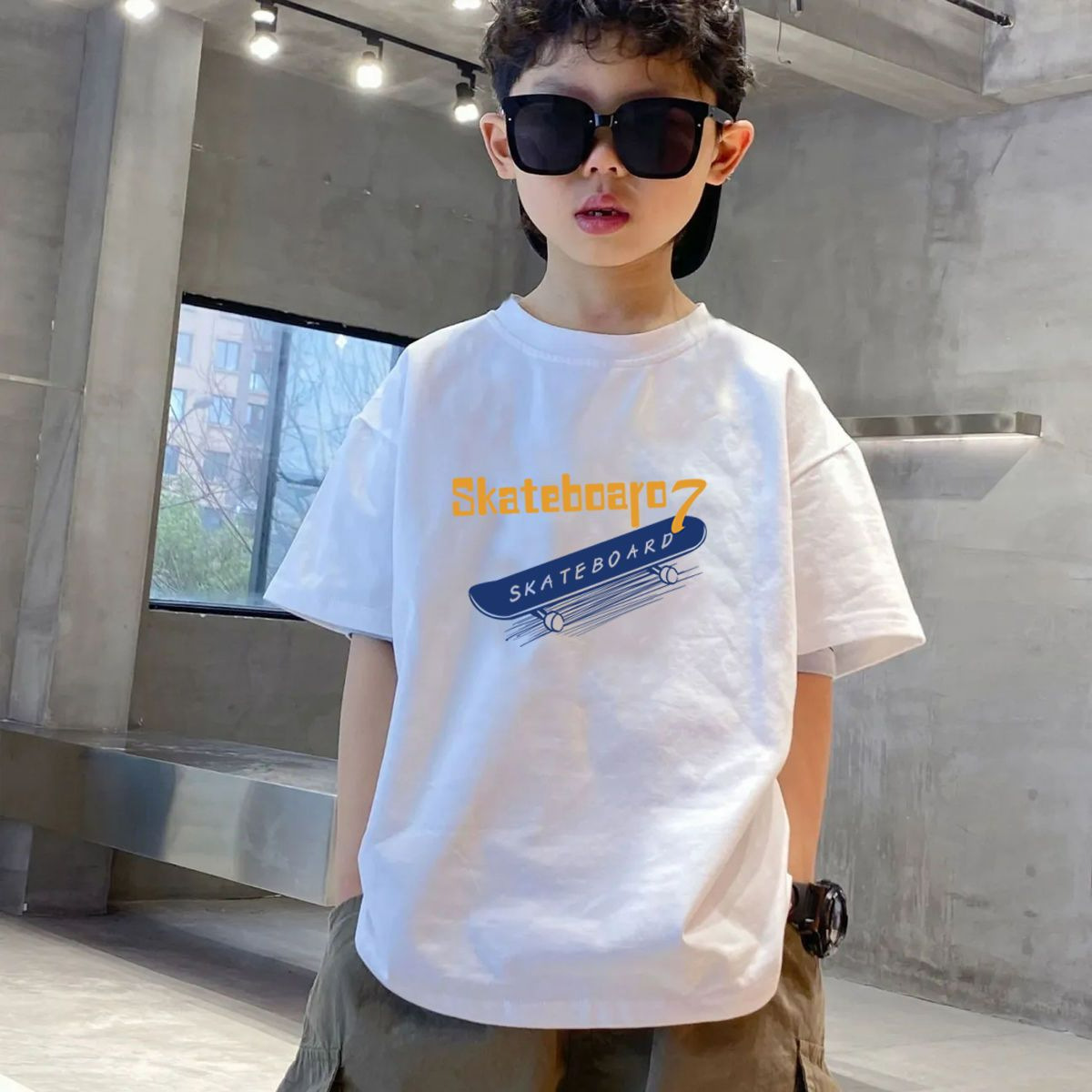 220g 무거운 아동복 소년의 순수한면 반팔 티셔츠 여름 착용 중대형 어린이 및 소년을위한 여름 타이드 탑스토어 가기