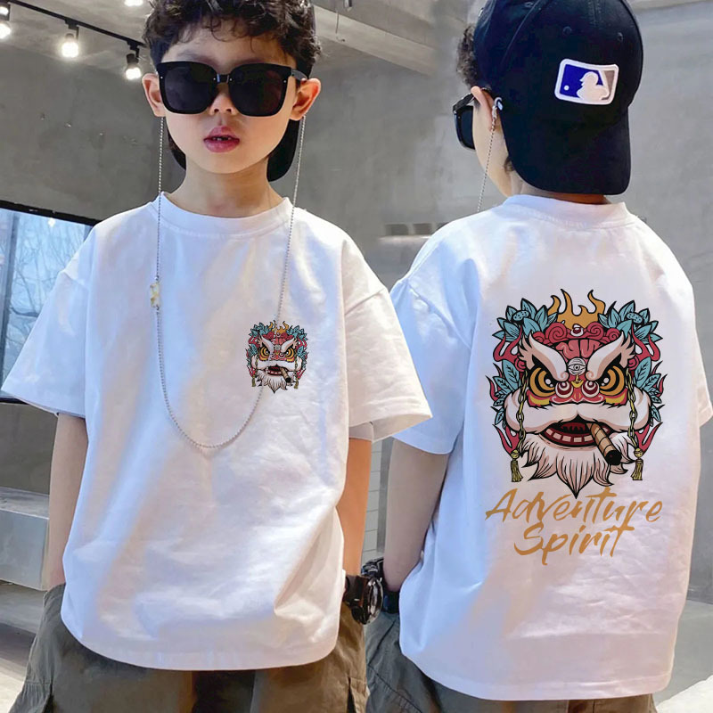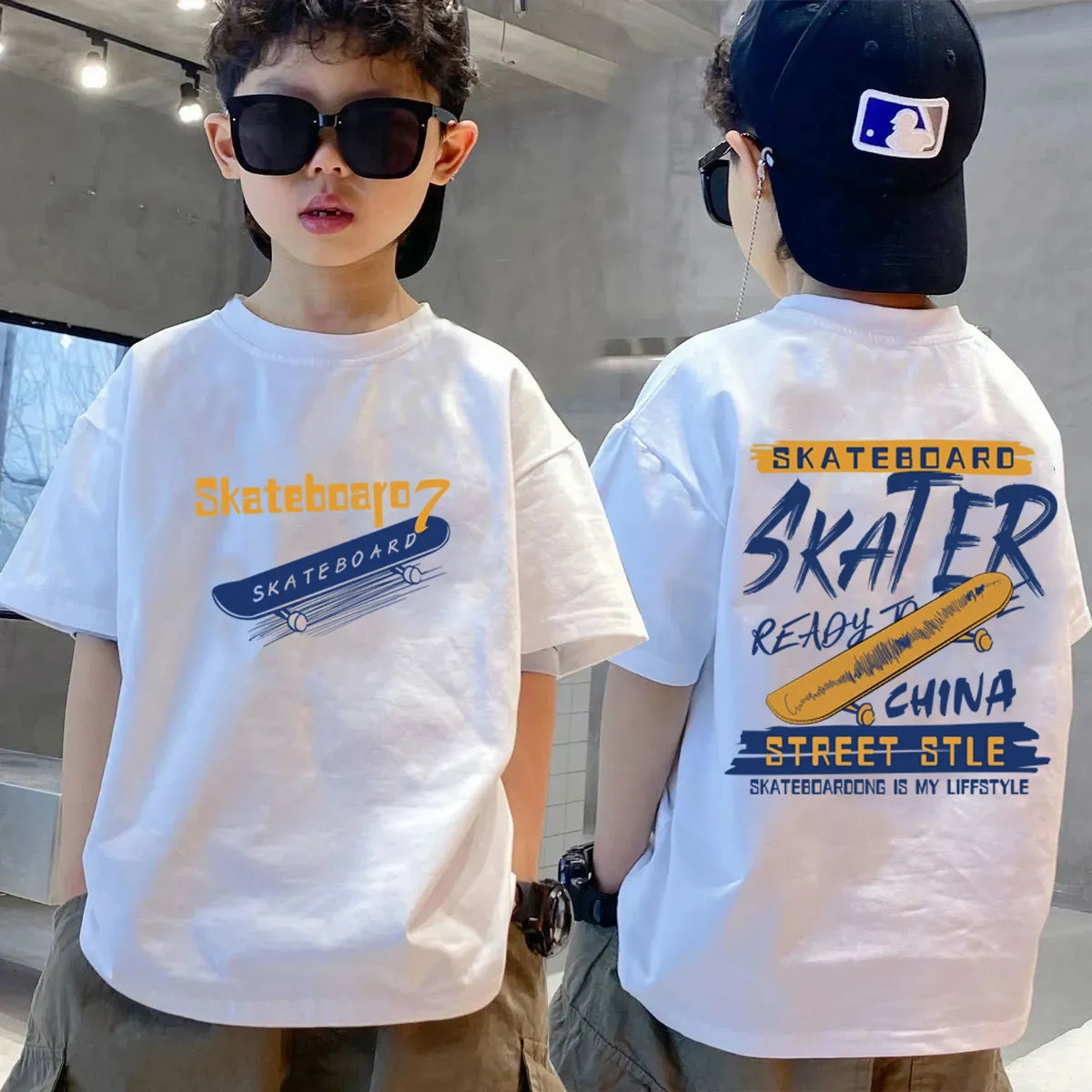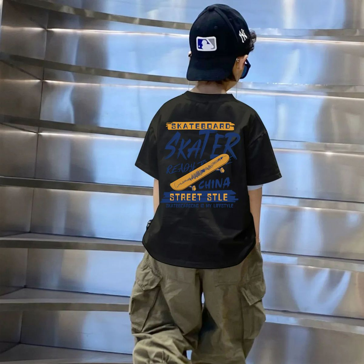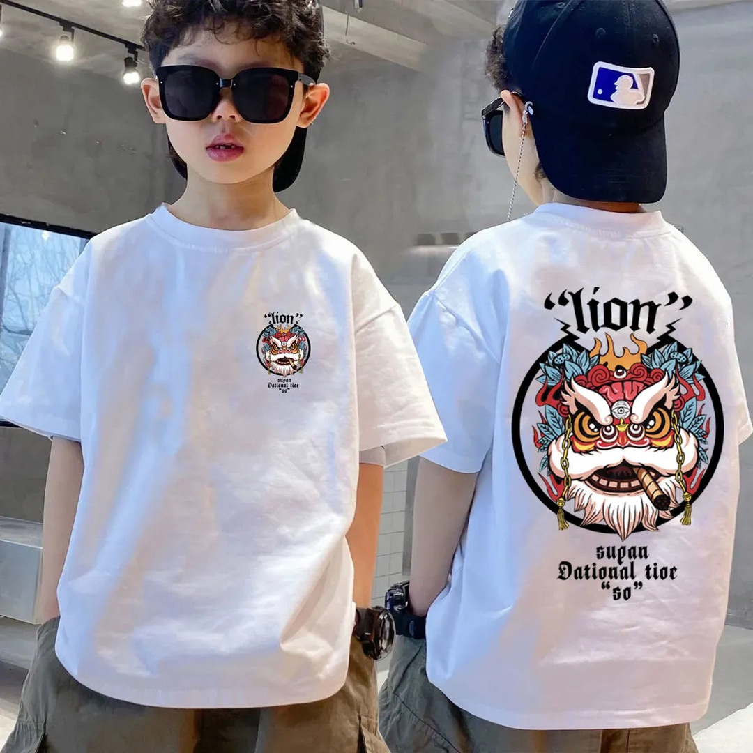 220g 무거운 아동복 소년의 순수한면 반팔 티셔츠 여름 착용 중대형 어린이 및 소년을위한 여름 타이드 탑스토어 가기