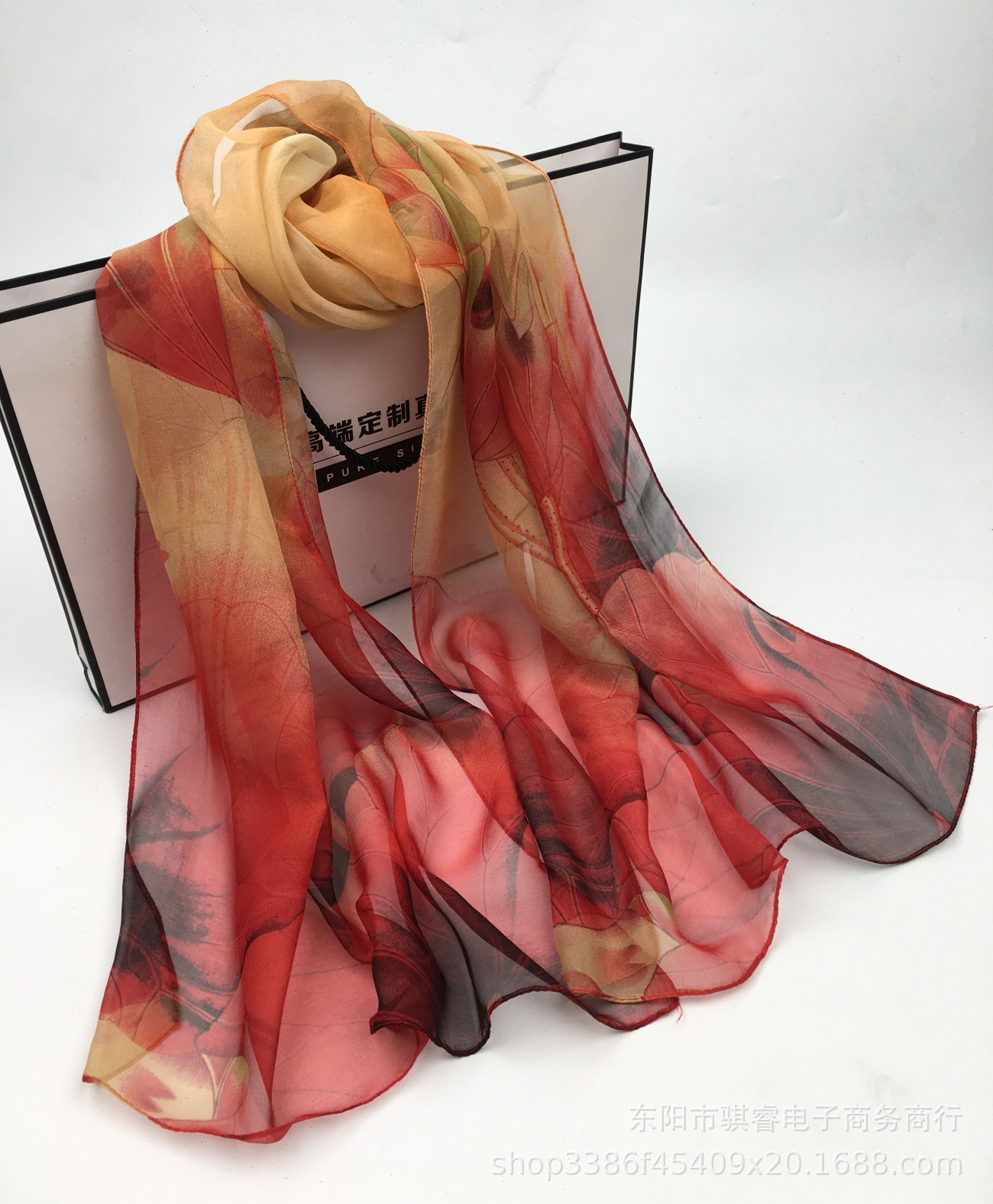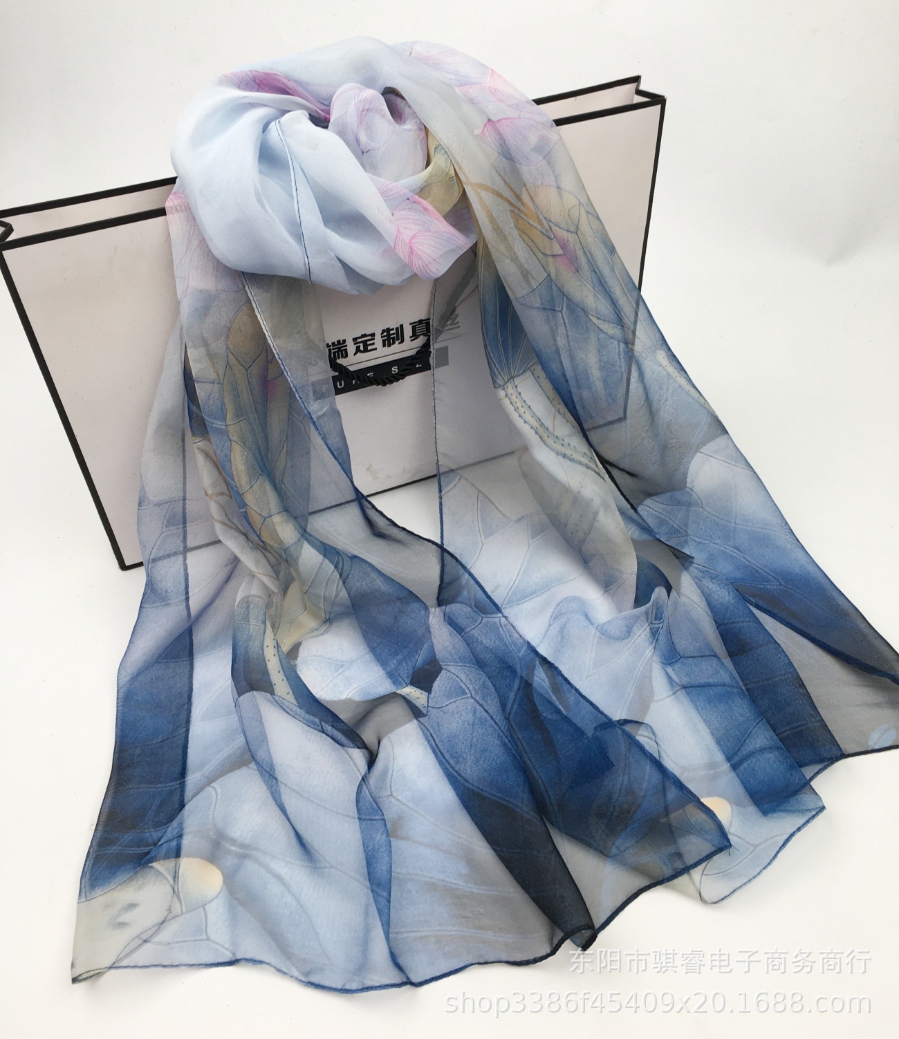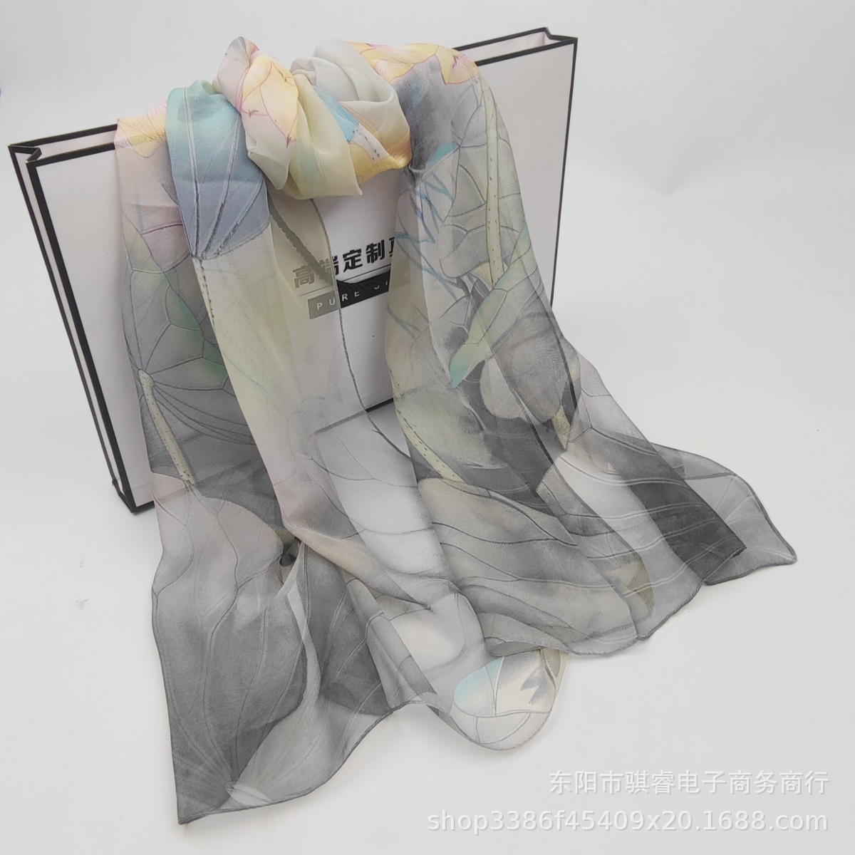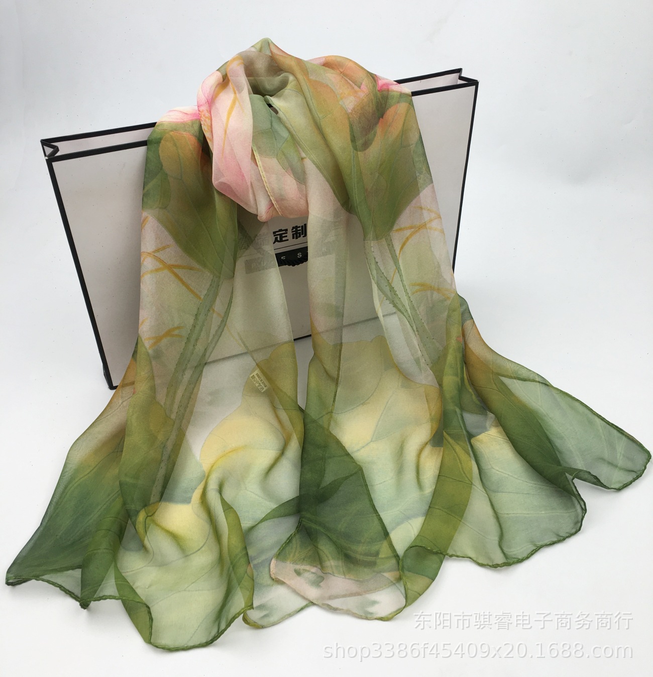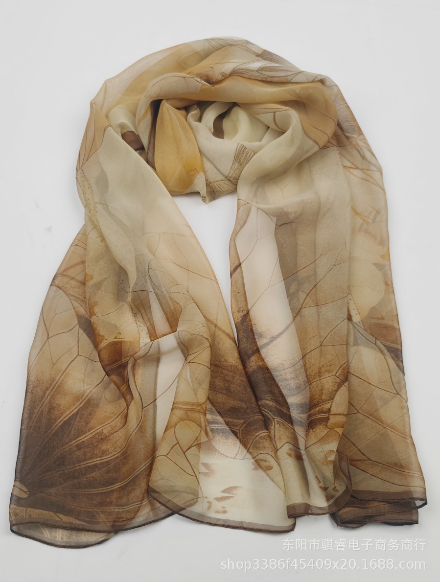 클래식 로터스 여름 자외선 차단제 스카프 Qiaoqi 여성용 얇은 실크 스카프 연꽃 연못 달빛 비치 스카프 장식 머리 스카프스토어 가기