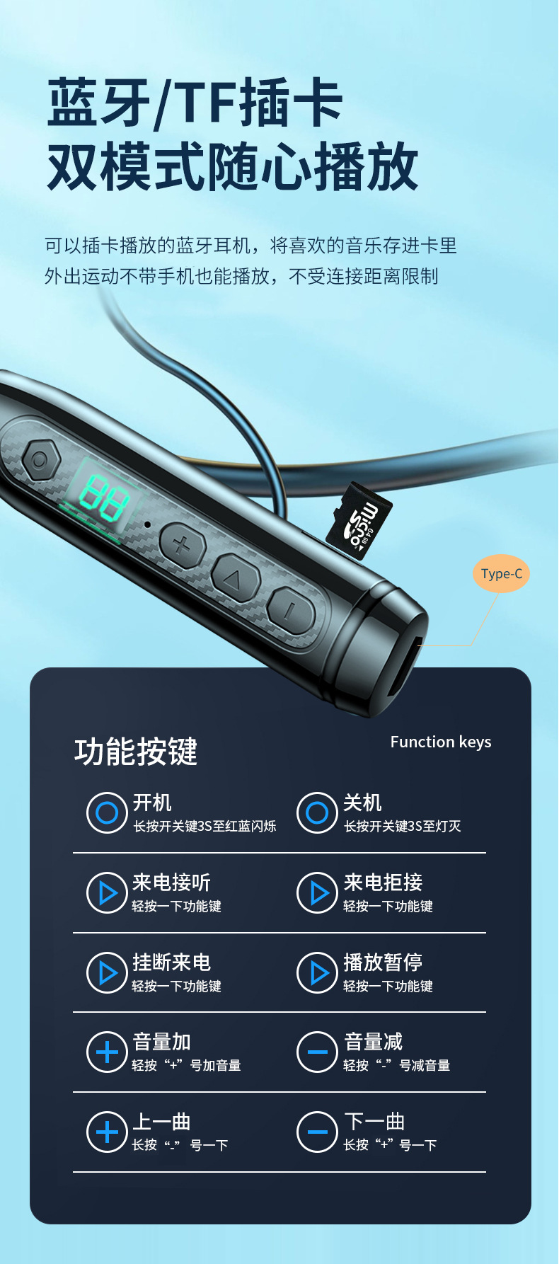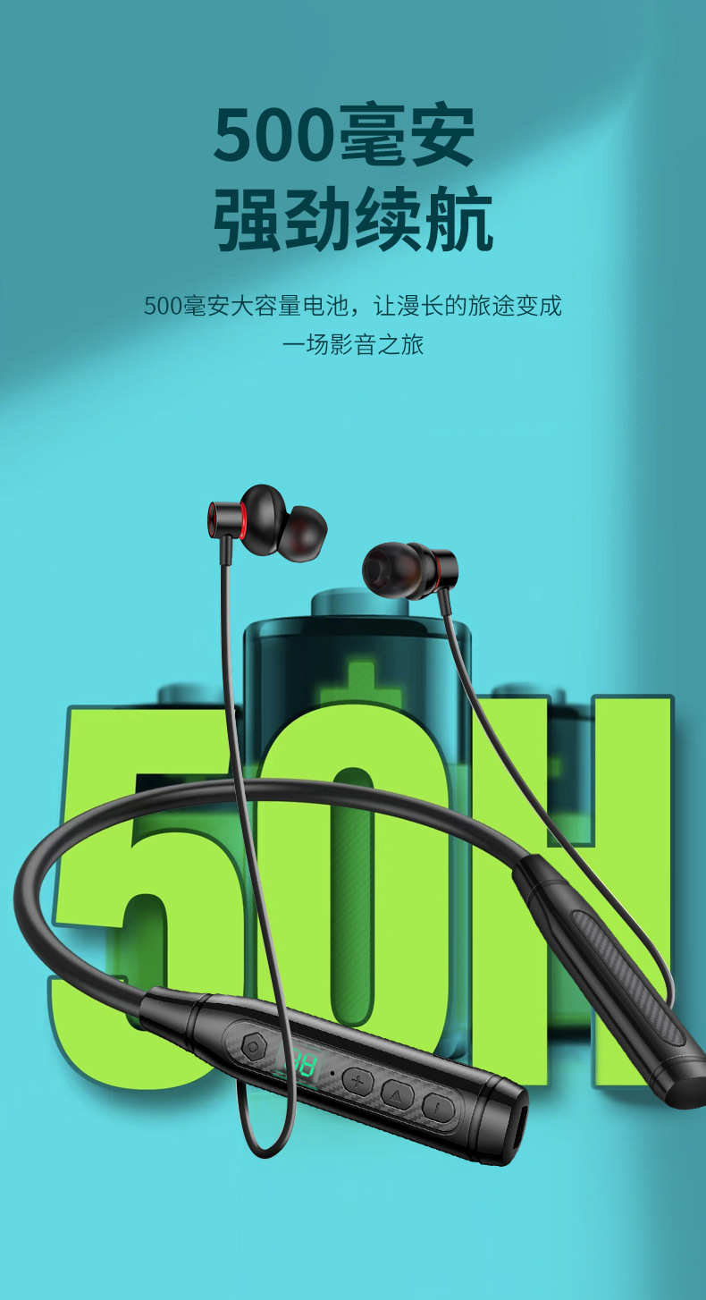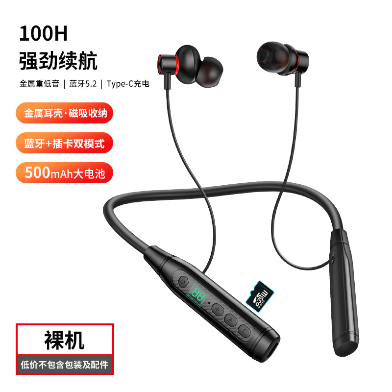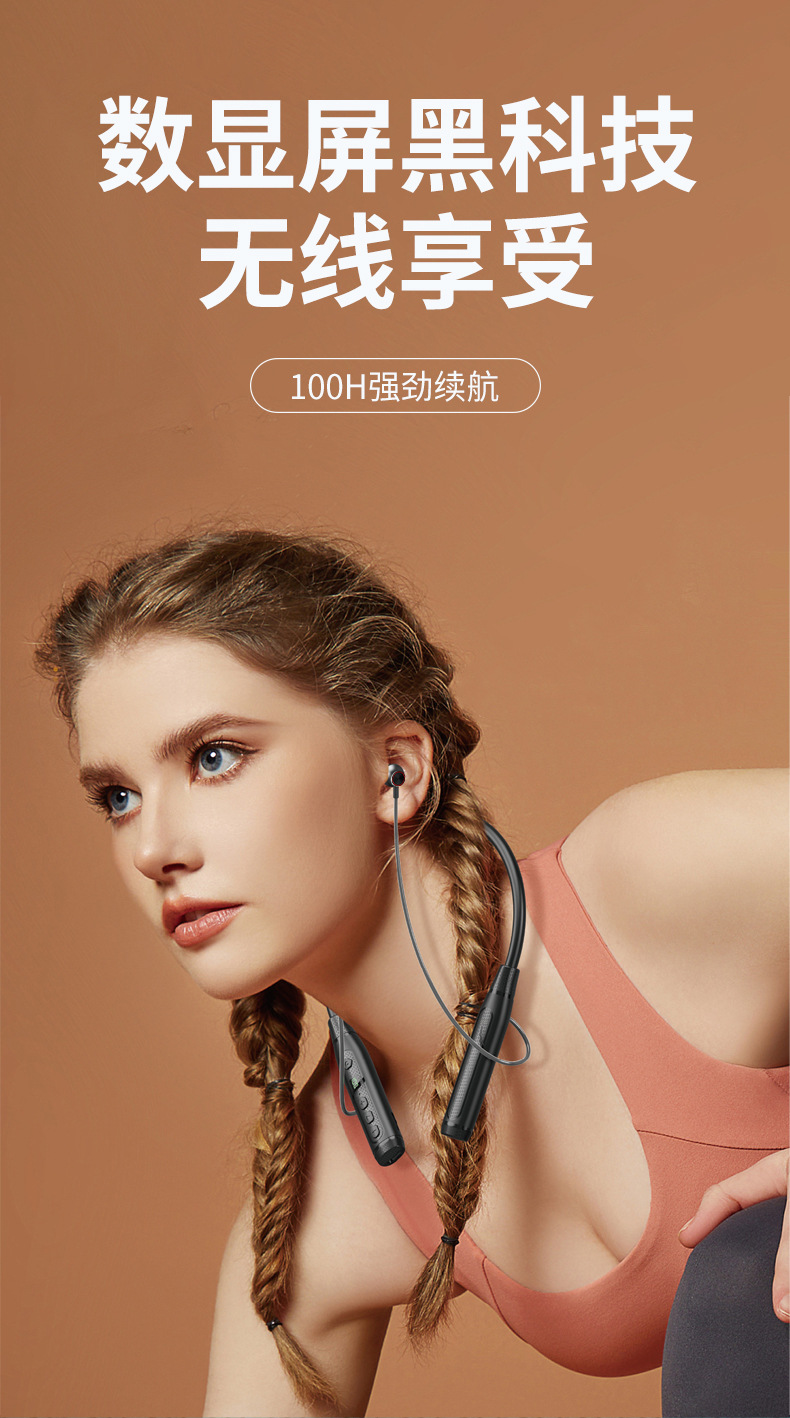 인이어 메탈 디지털 디스플레이 대형 파워 바 이노 럴 롱 내구 블루투스 헤드셋 무선 넥 마운트 스포츠 헤드셋