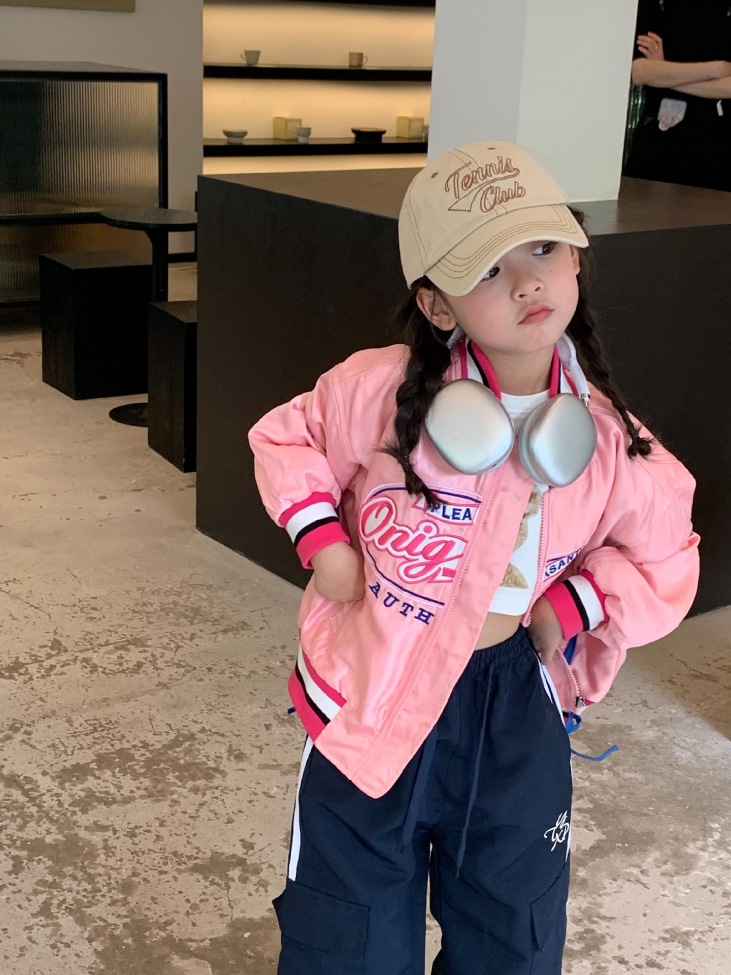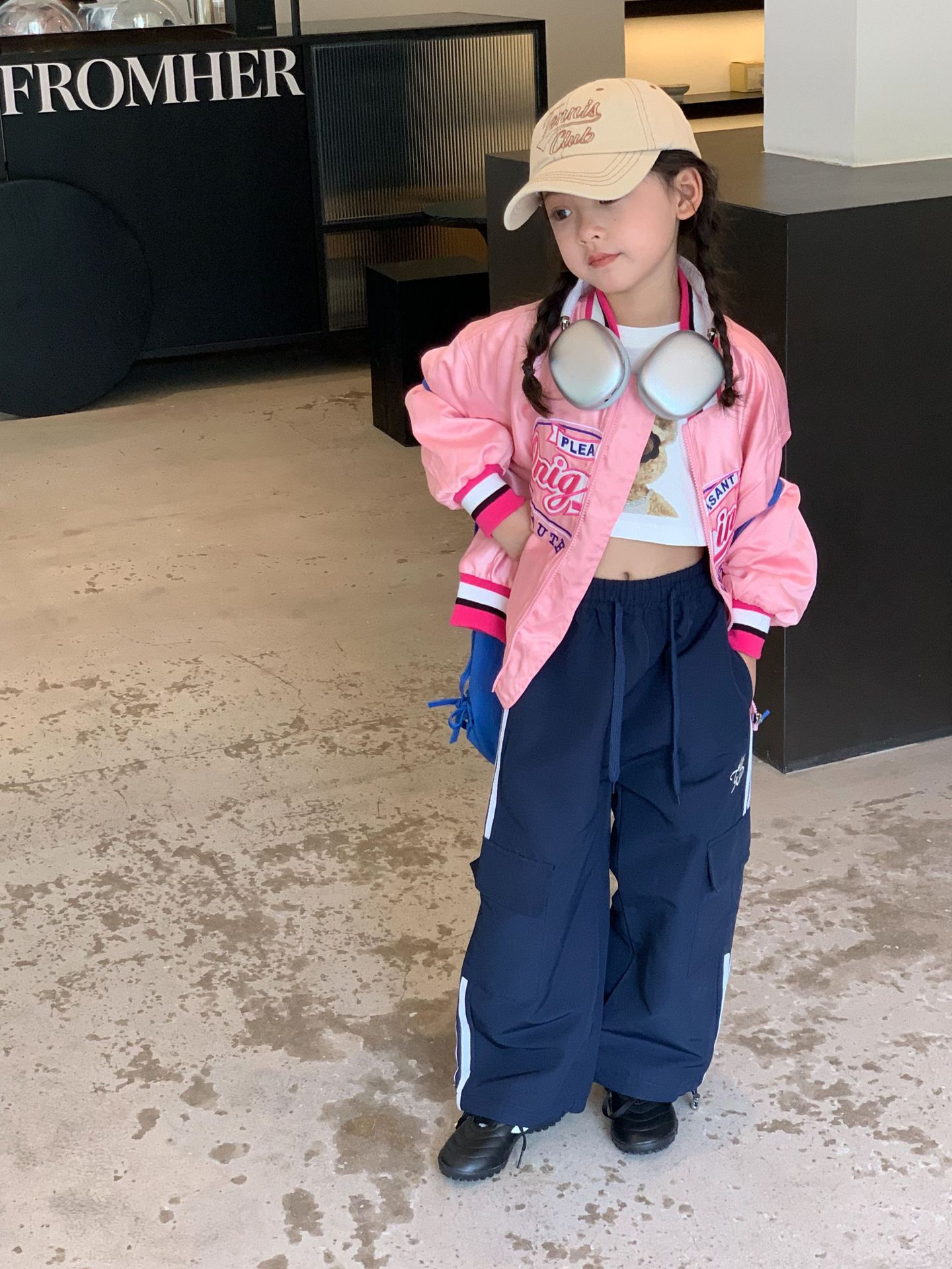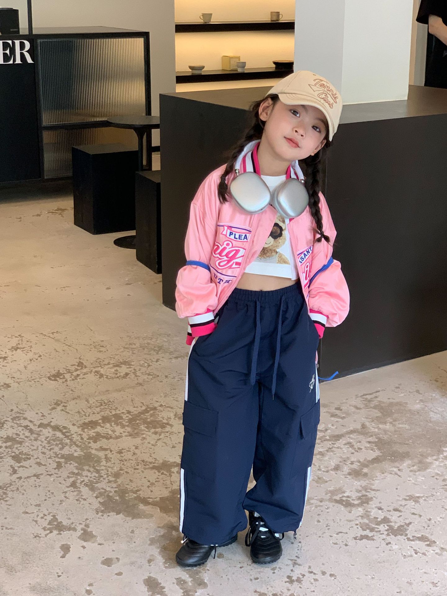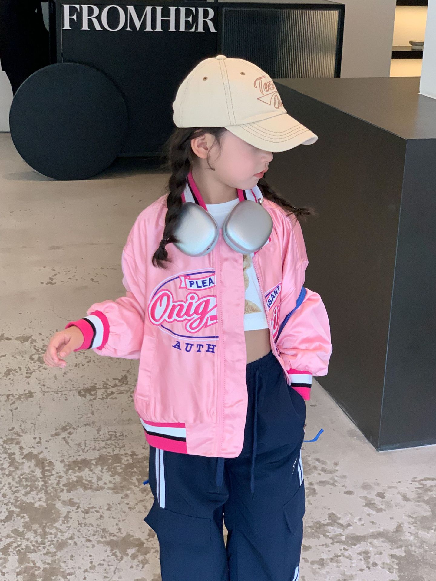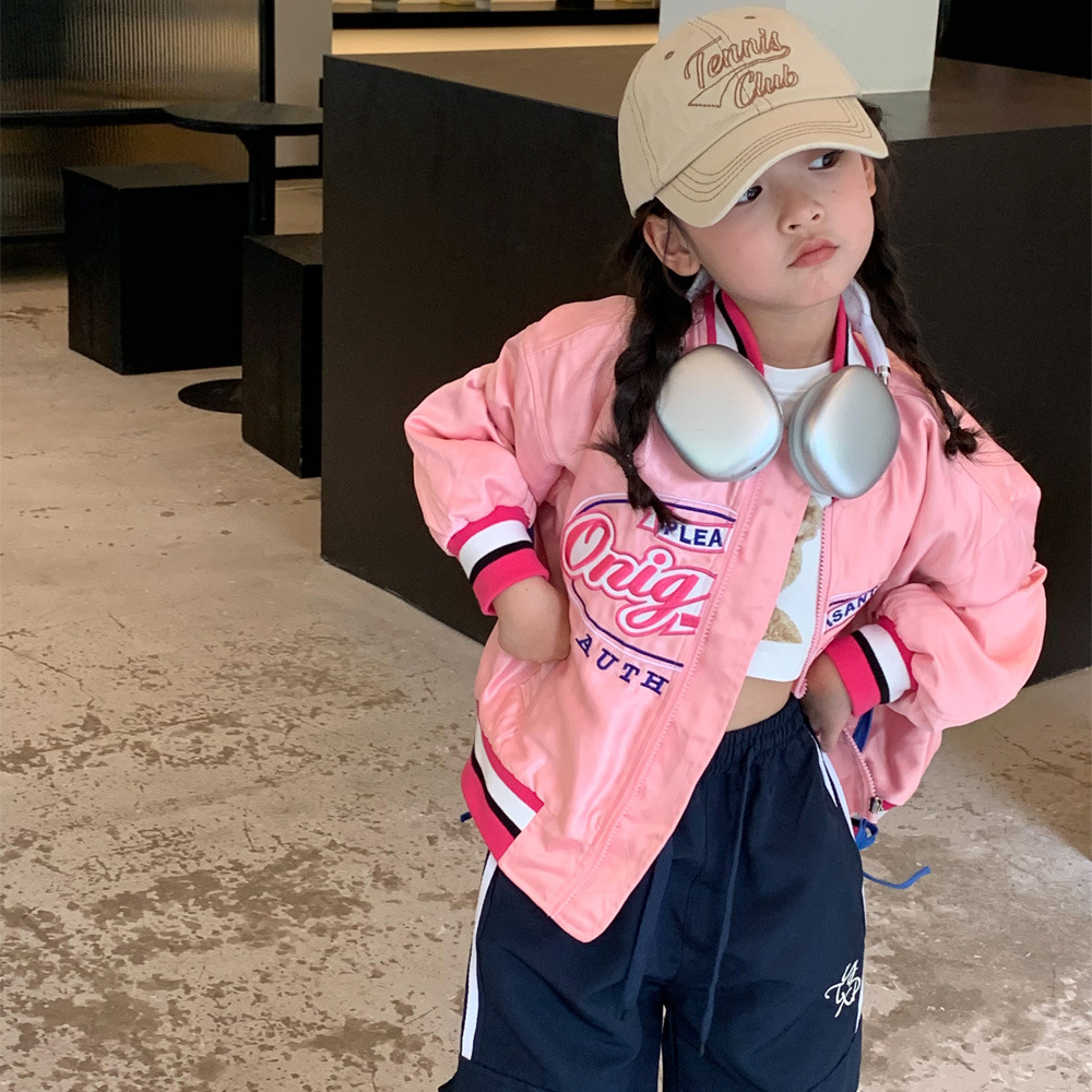 여아 야구 점퍼 아동복 2023 가을 스타일 아동복 레트로 루즈핏 레터 자수 재킷 상의 트렌디스토어 가기