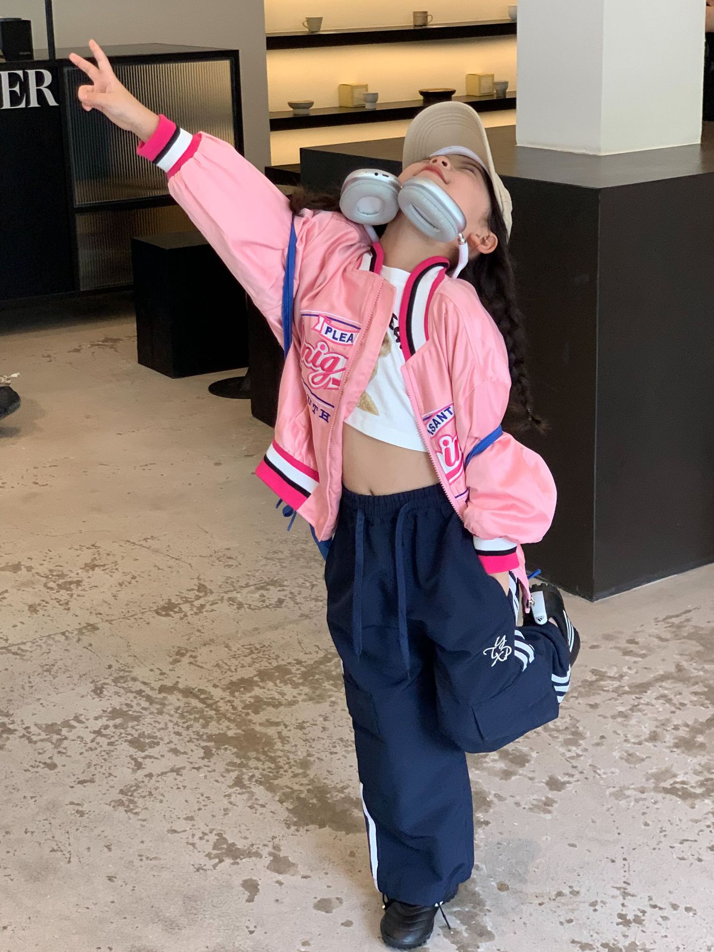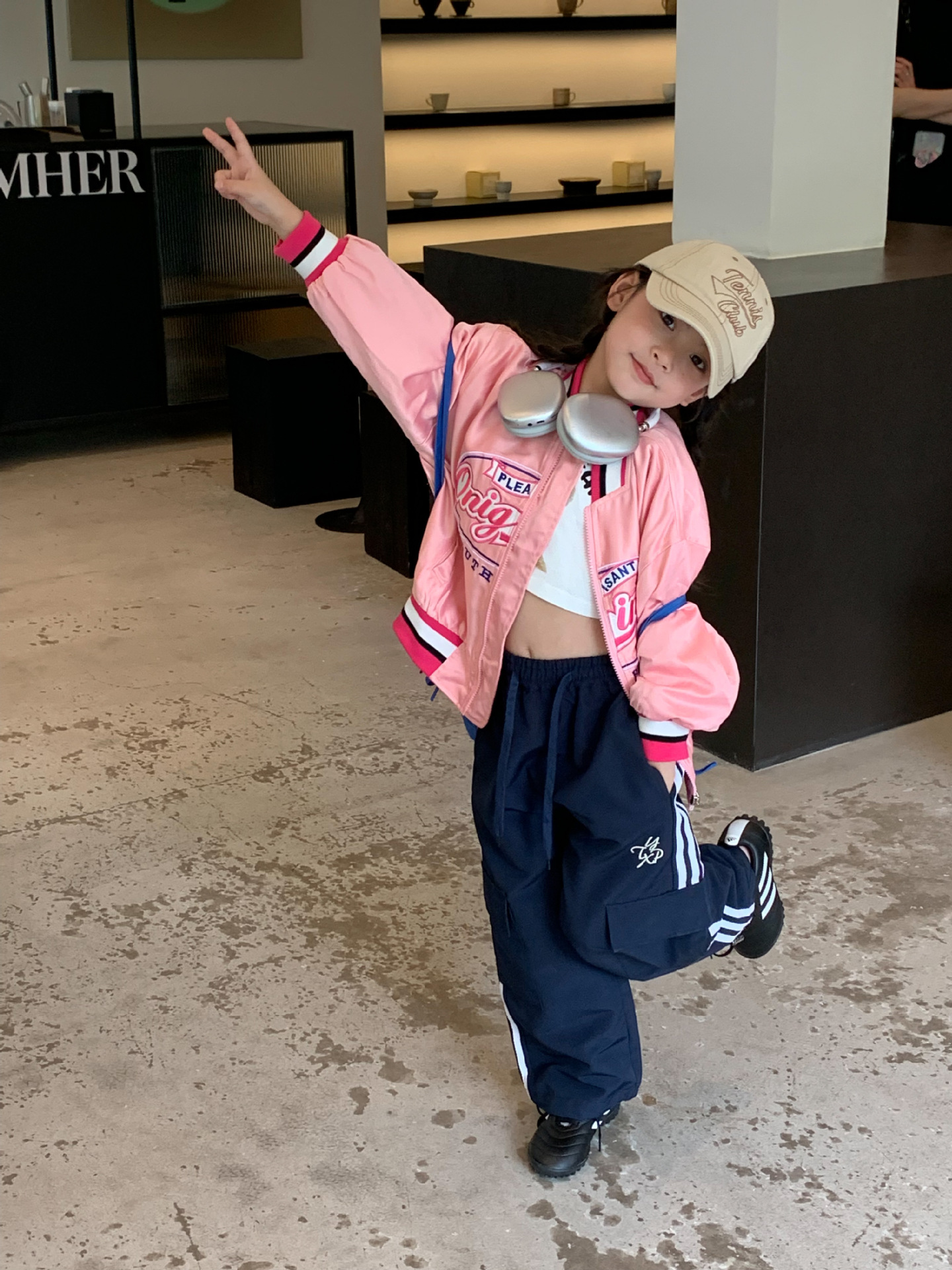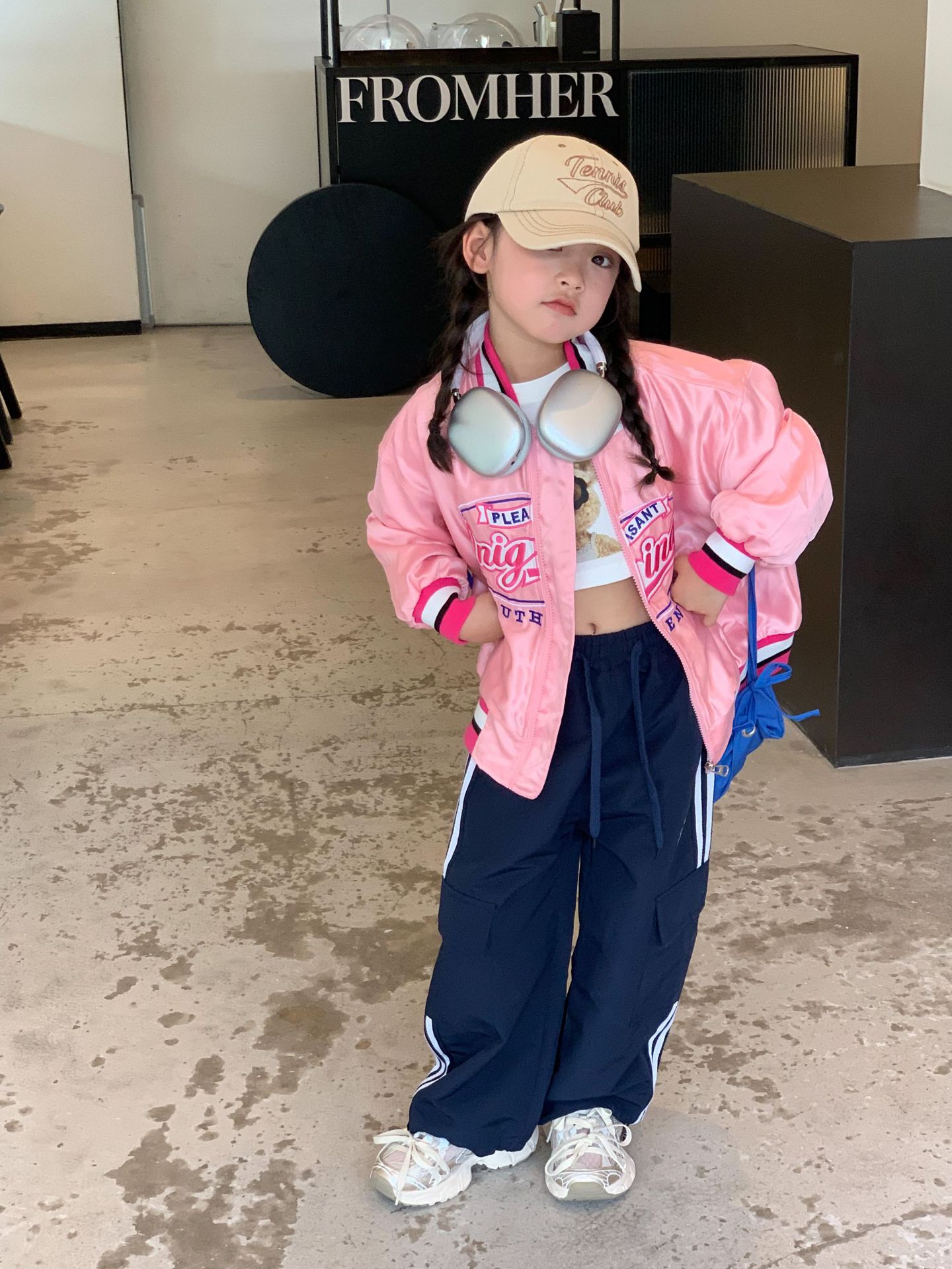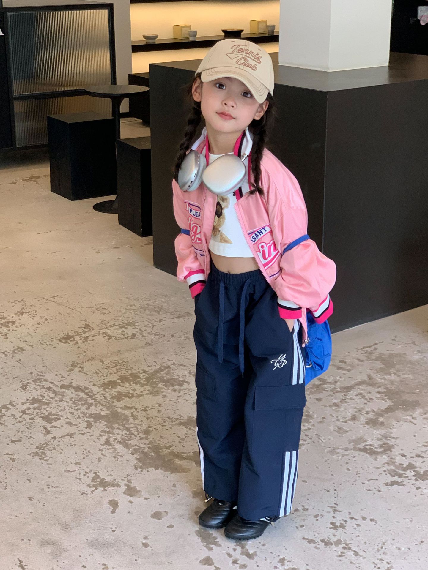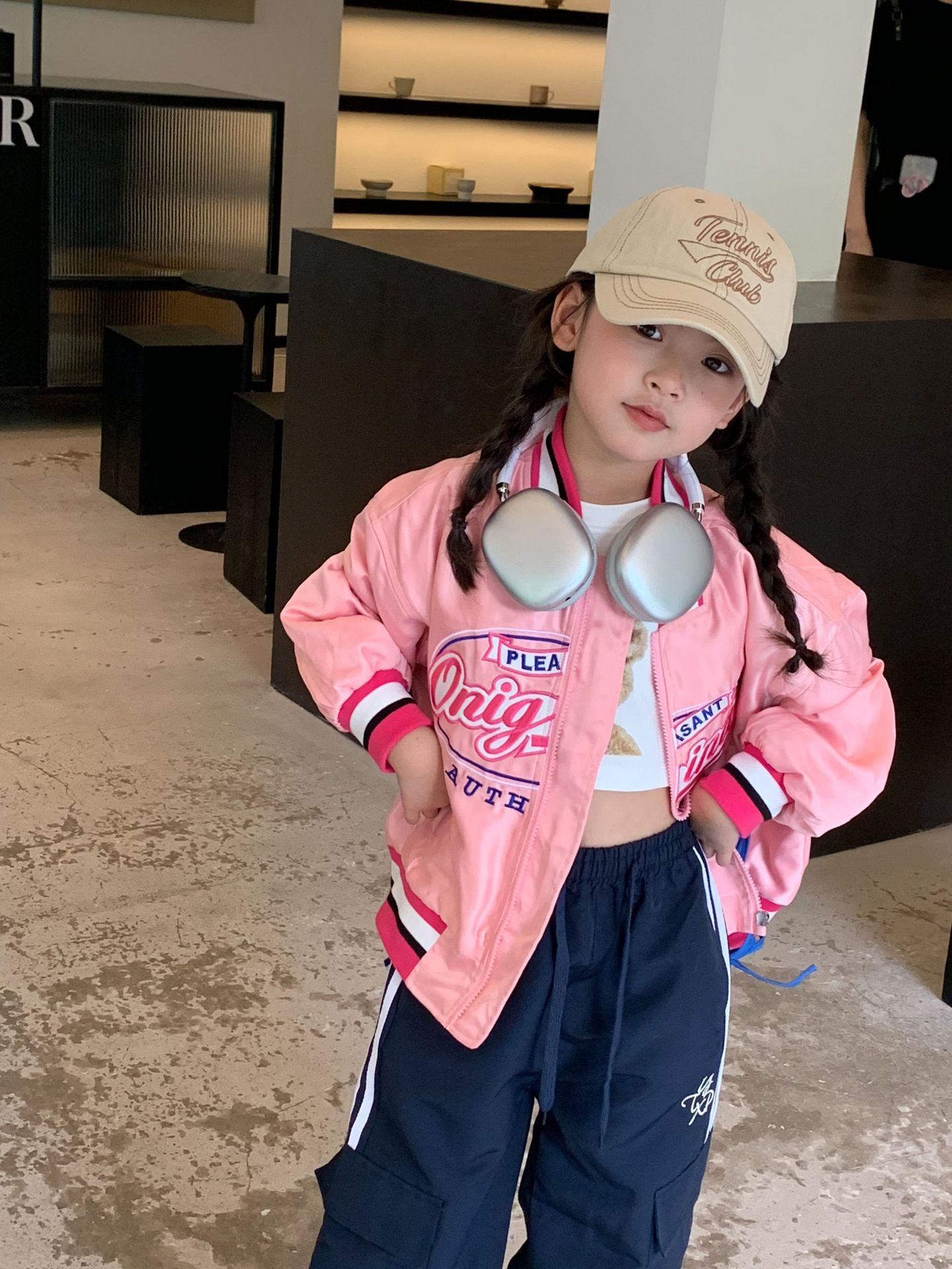 여아 야구 점퍼 아동복 2023 가을 스타일 아동복 레트로 루즈핏 레터 자수 재킷 상의 트렌디스토어 가기