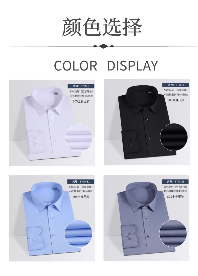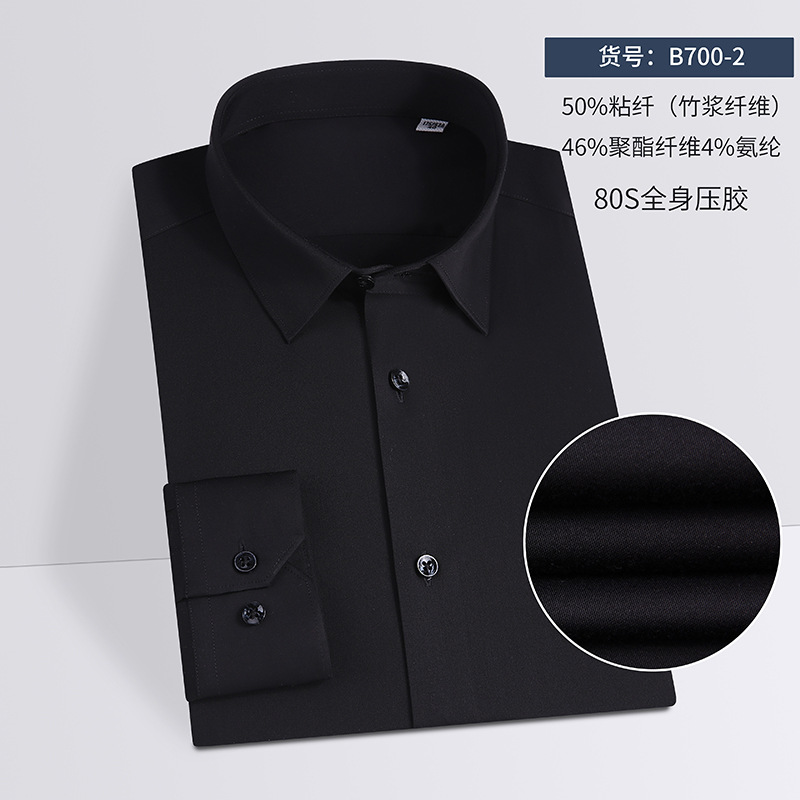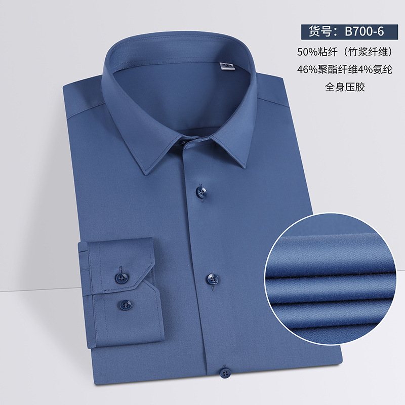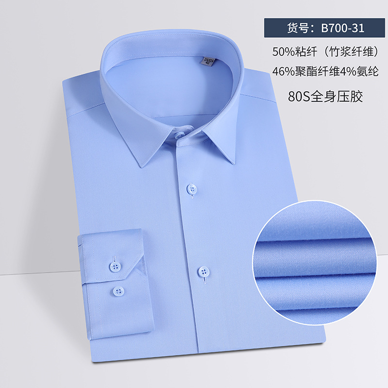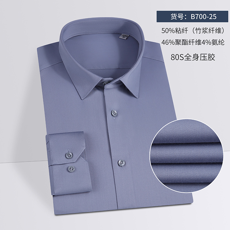 80 대나무 섬유 단색 봄과 가을 남성 비즈니스 고급 긴팔 셔츠 드레이프 비 다림질 캐주얼 남성 셔츠스토어 가기