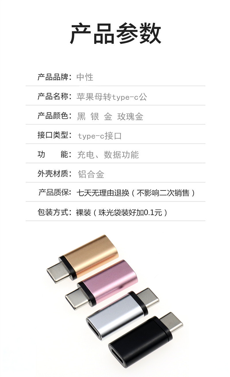 타입 C 휴대 전화 어댑터에 데이터 전송 번개를 충전하는 typec 어댑터에 Apple에 적용 가능