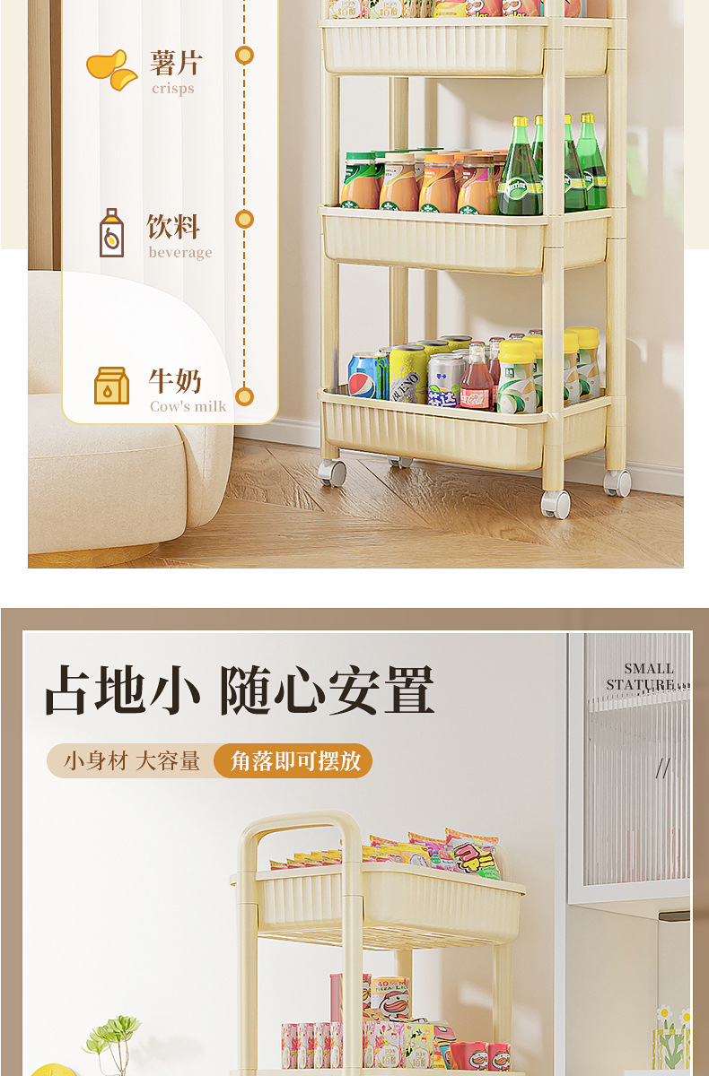 스낵 트롤리 수납 선반, 다층 이동식 거실, 기숙사, 침실 스낵 보관 선반