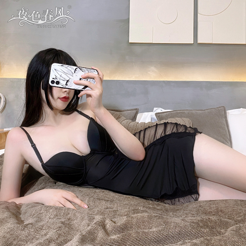 섹시한 메쉬 파자마 가슴 패드 여름 슬링 무료 나이트 드레스 여성의 레이스 백리스 원근법 순수한 욕망 열정 유혹스토어 가기