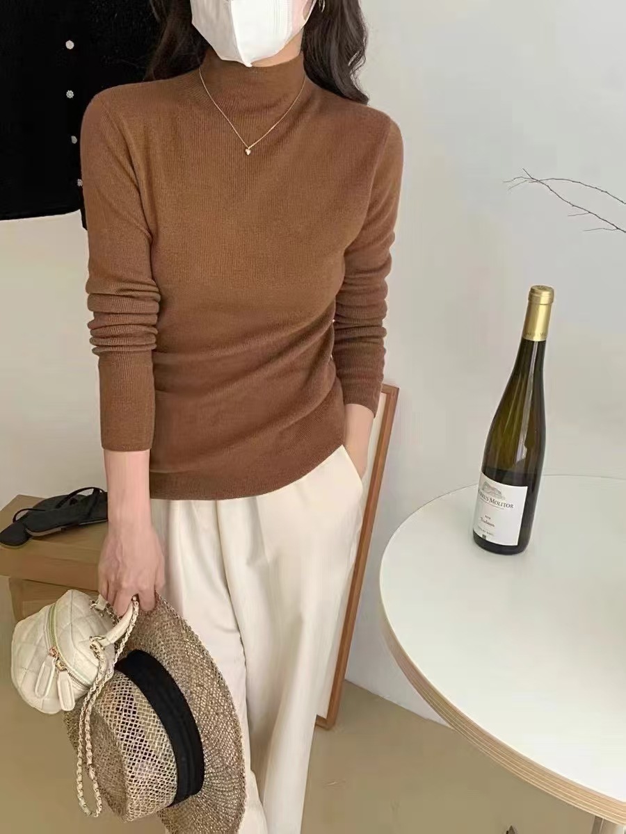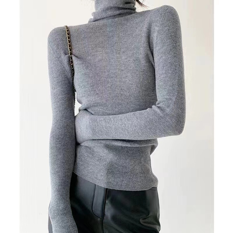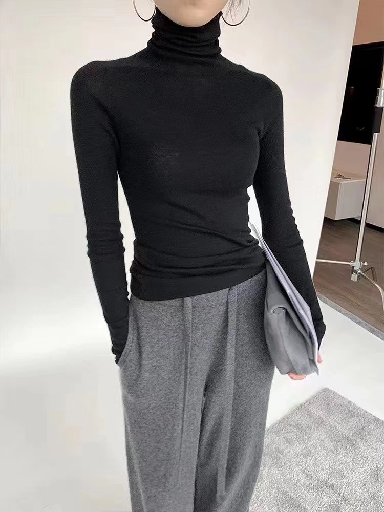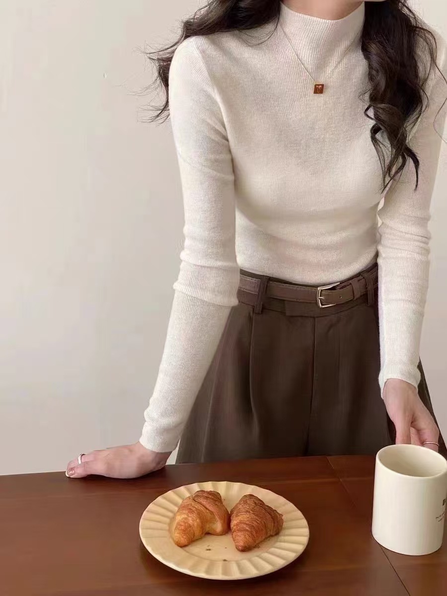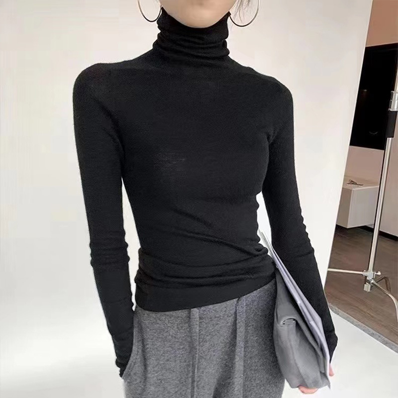 원활한 원피스 모직 스웨터 터틀넥 스웨터 여성용 봄과 가을 고급 슬림핏 베이스 풀오버 스웨터 얇은 흰색