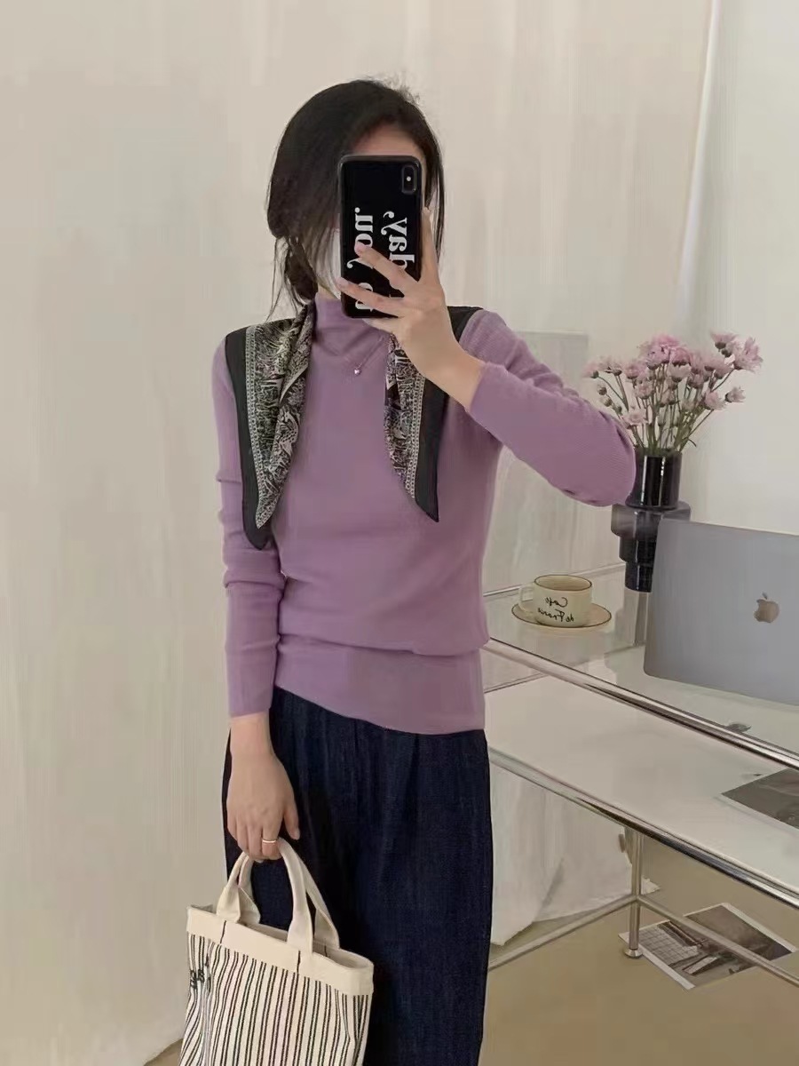 원활한 원피스 모직 스웨터 터틀넥 스웨터 여성용 봄과 가을 고급 슬림핏 베이스 풀오버 스웨터 얇은 흰색스토어 가기