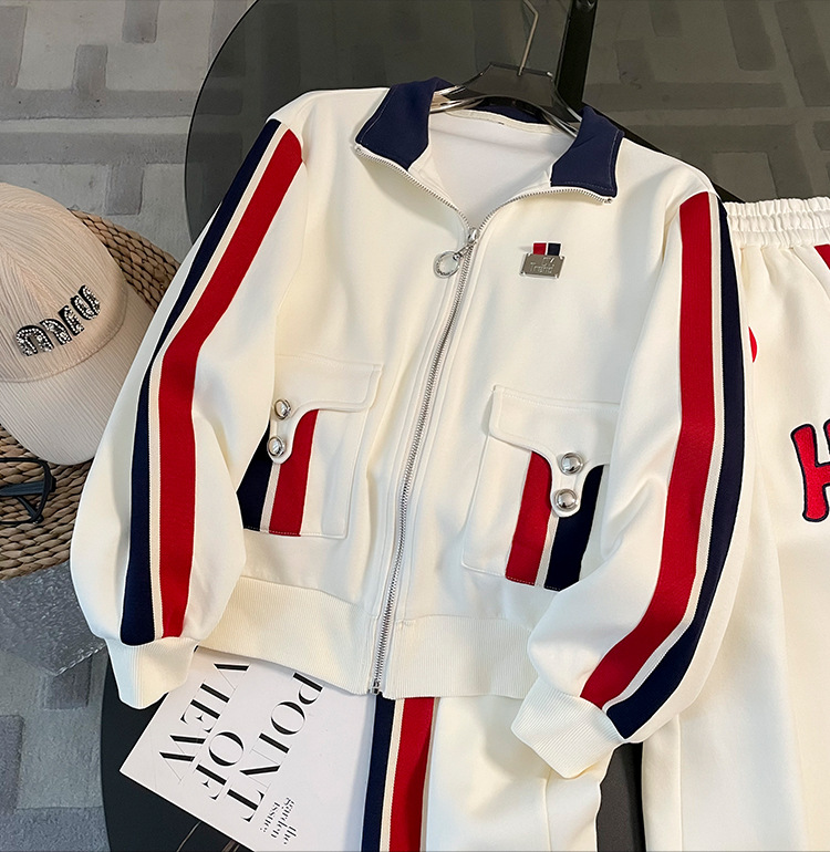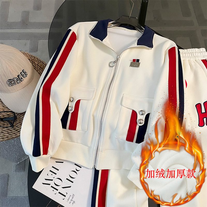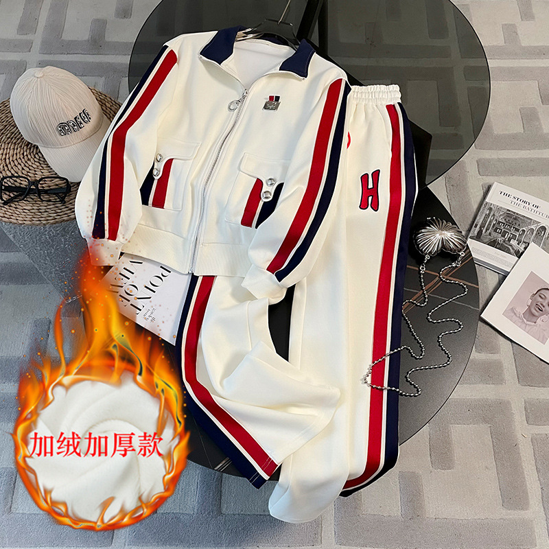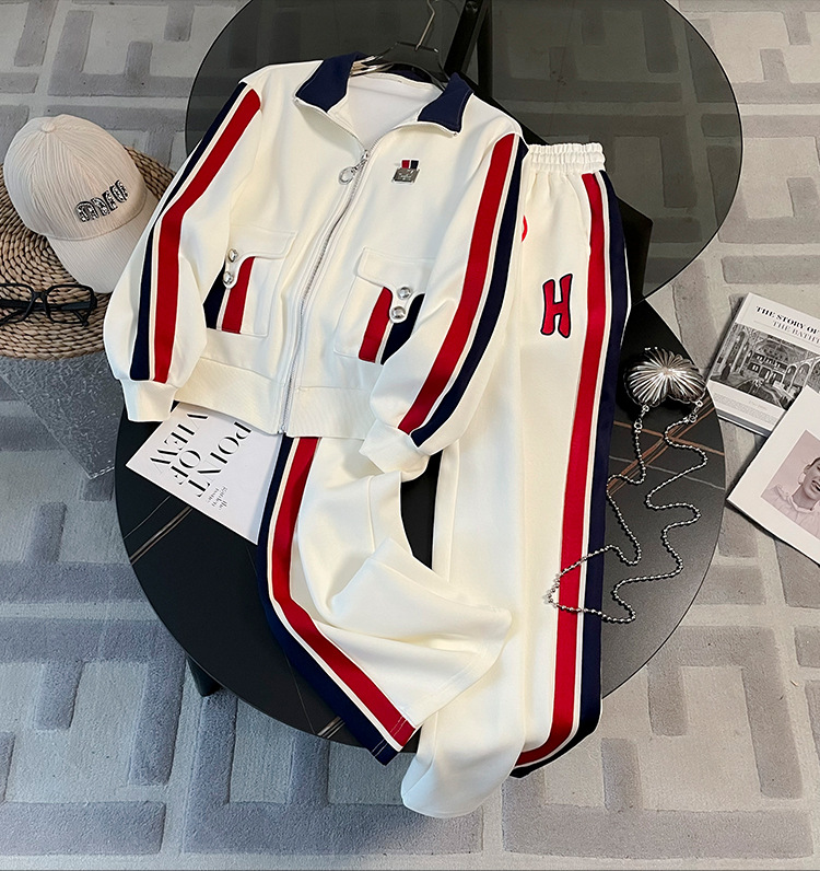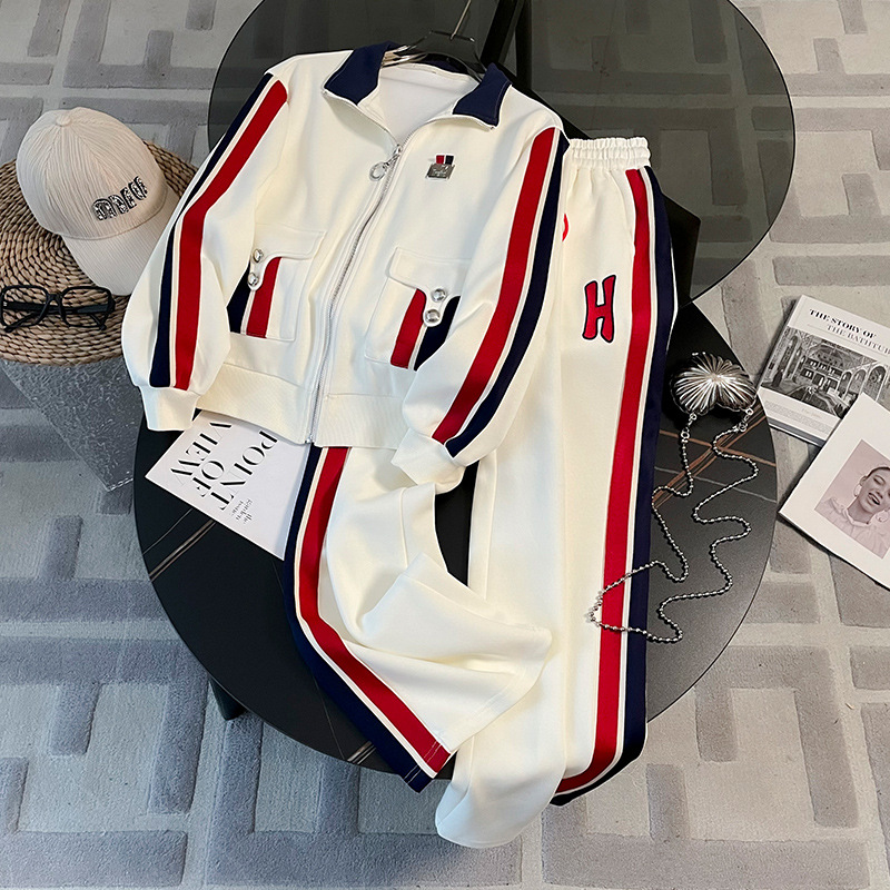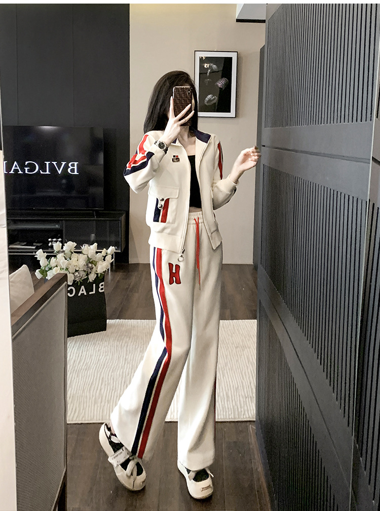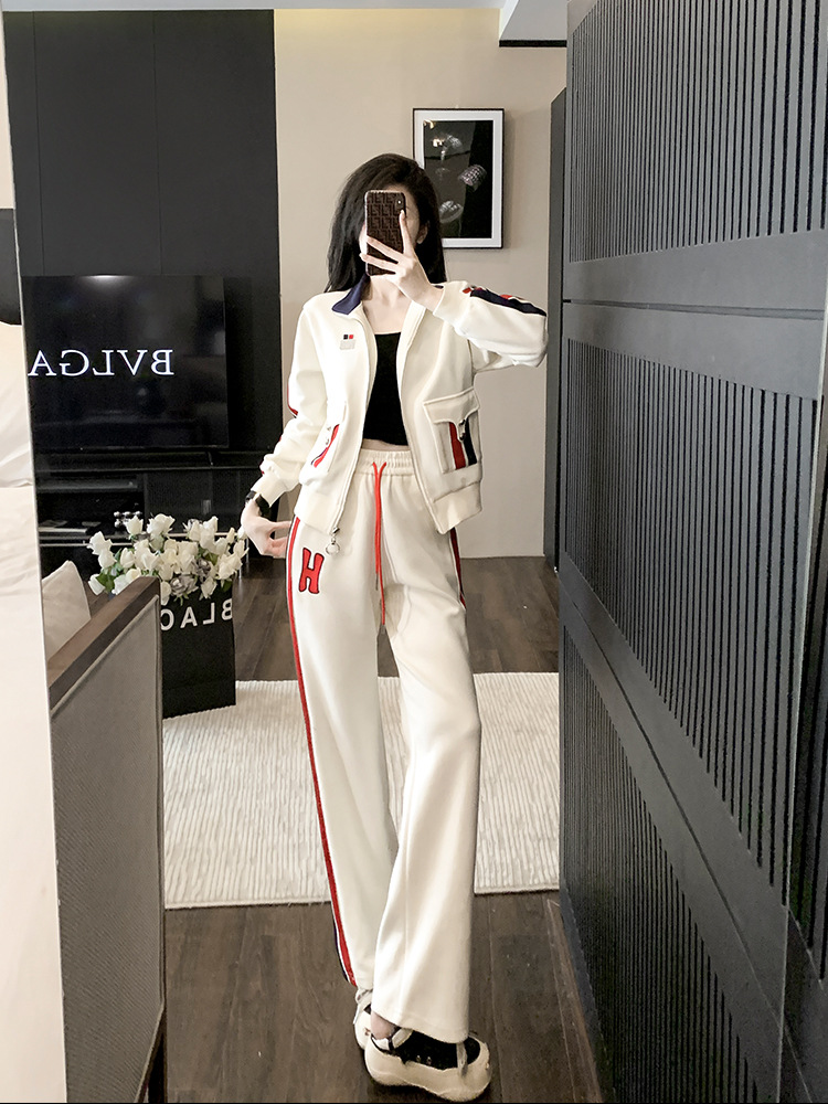 가을 뉴 캐주얼 스포츠 세트 여성 2023 패션 서양식 슬림핏 슬리밍 연령 감소 와이드 팬츠 투피스 세트