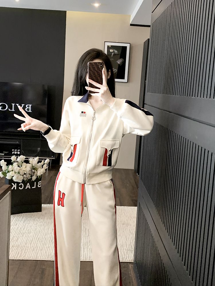 가을 뉴 캐주얼 스포츠 세트 여성 2023 패션 서양식 슬림핏 슬리밍 연령 감소 와이드 팬츠 투피스 세트스토어 가기
