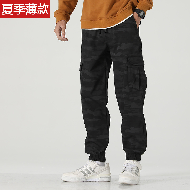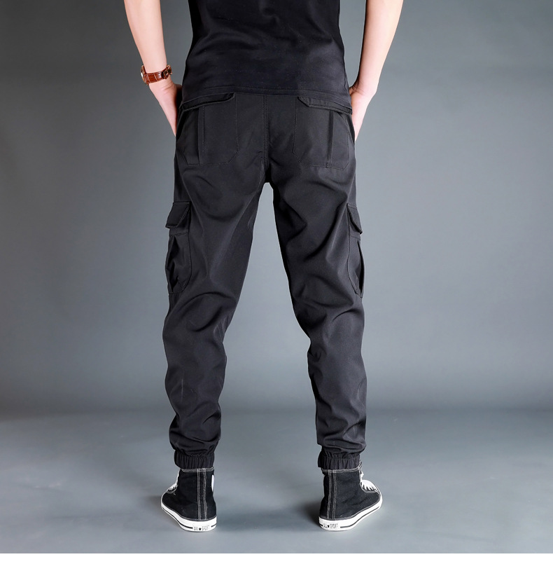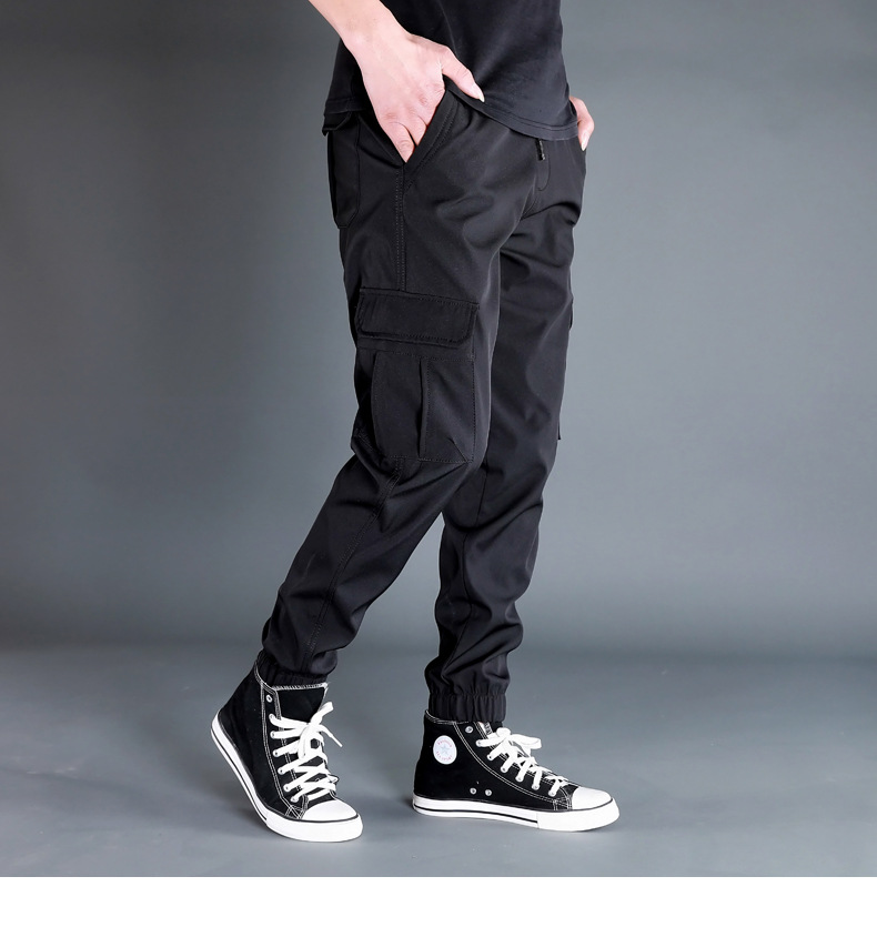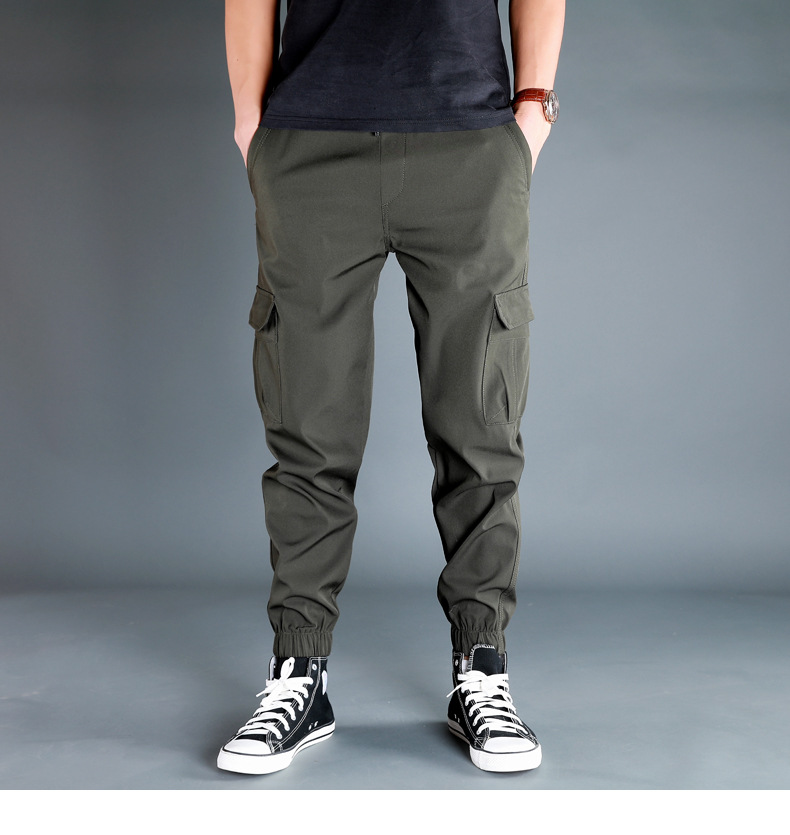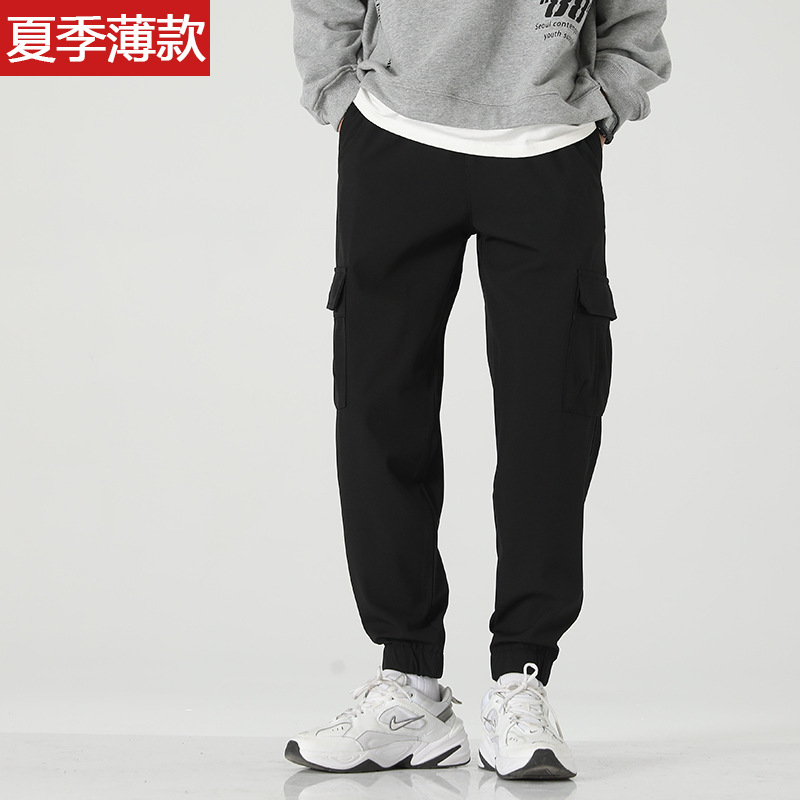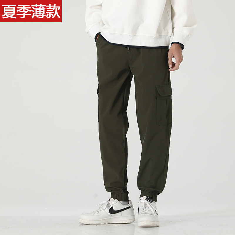 멀티 포켓 바지 남성용 여름 얇은 유행 유행 발 하렘 바지 느슨한 캐주얼 바지 남성 발목 바지