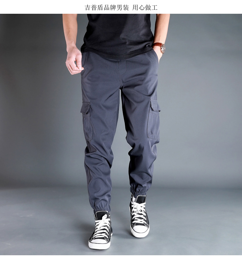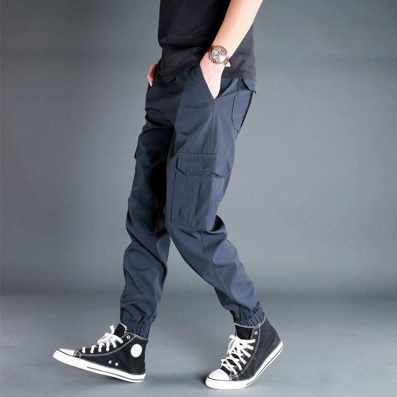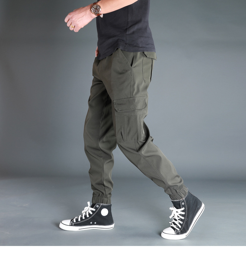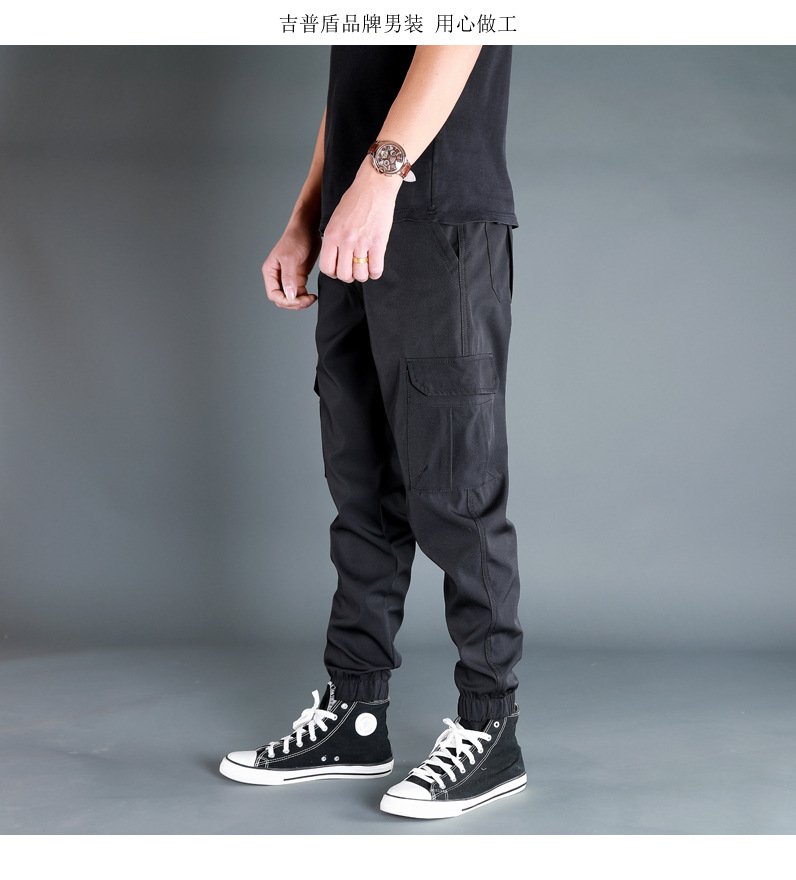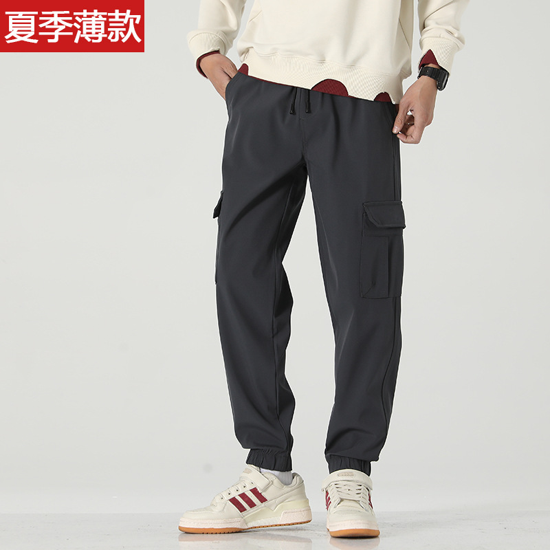 멀티 포켓 바지 남성용 여름 얇은 유행 유행 발 하렘 바지 느슨한 캐주얼 바지 남성 발목 바지