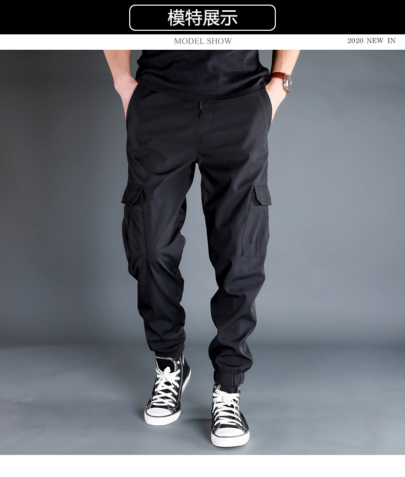 멀티 포켓 바지 남성용 여름 얇은 유행 유행 발 하렘 바지 느슨한 캐주얼 바지 남성 발목 바지스토어 가기