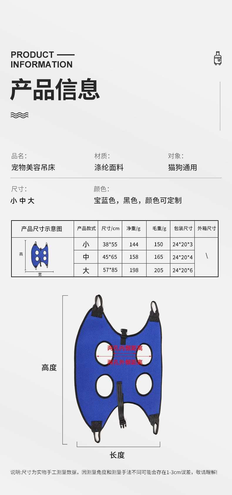 국경 간 애완 동물 해먹 고양이와 개 목욕 청소 및 미용 해먹 고정 손톱 트리밍 세트 고양이 가방 세척
