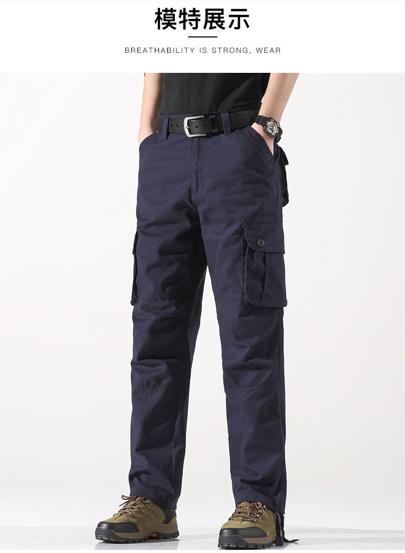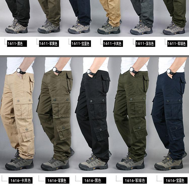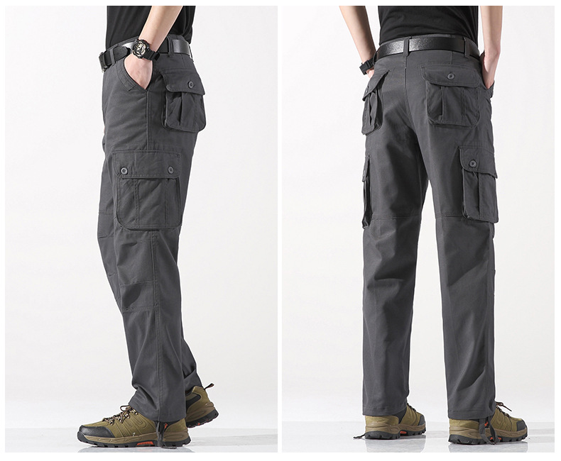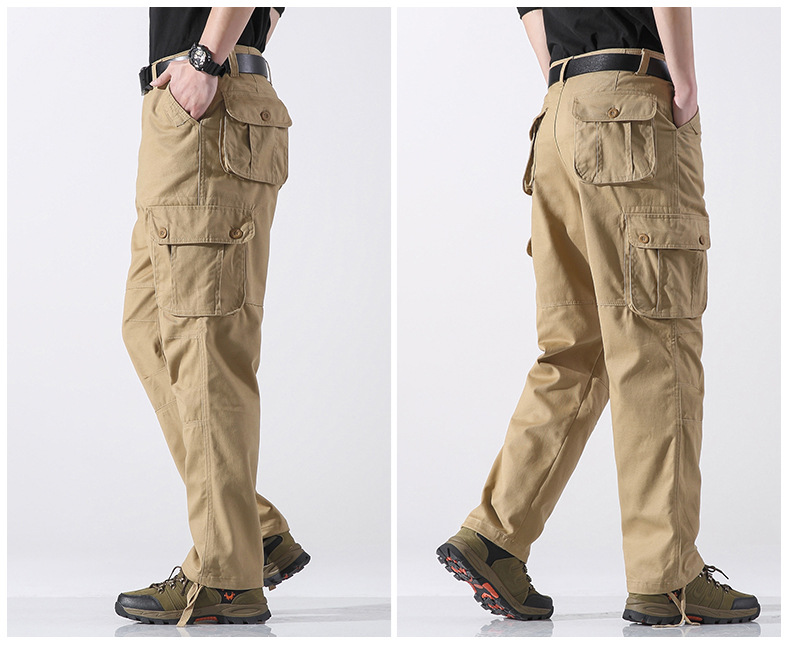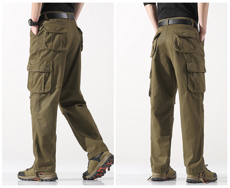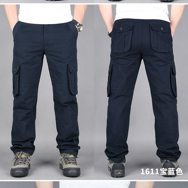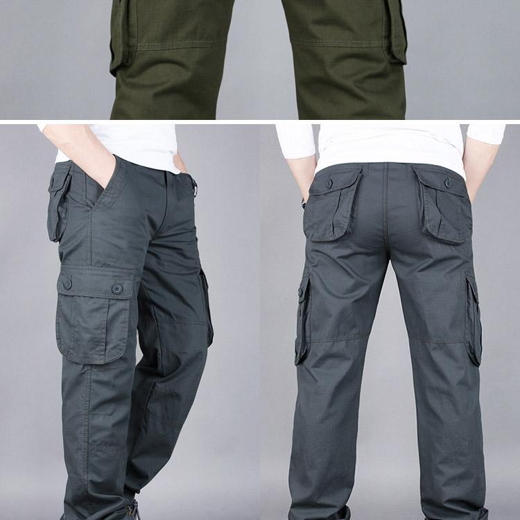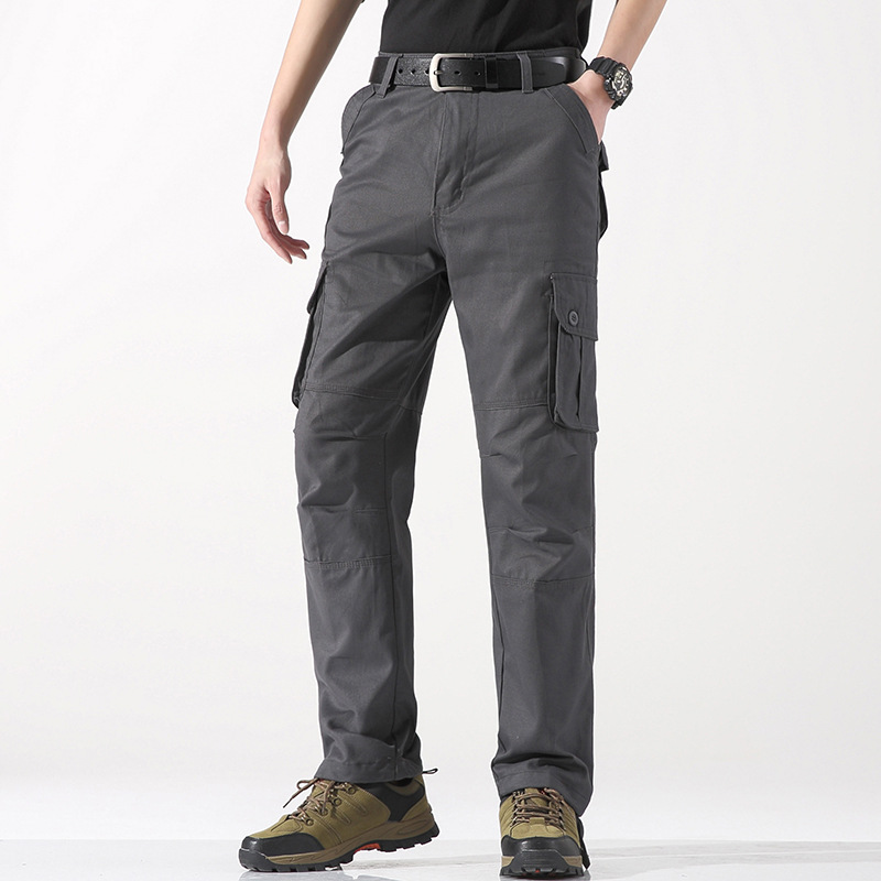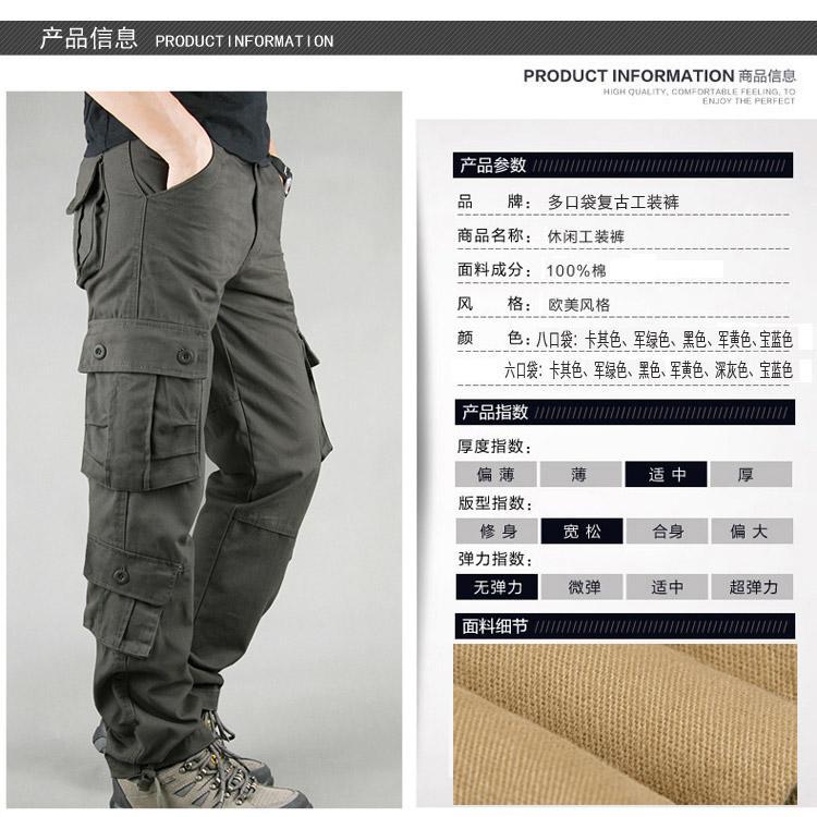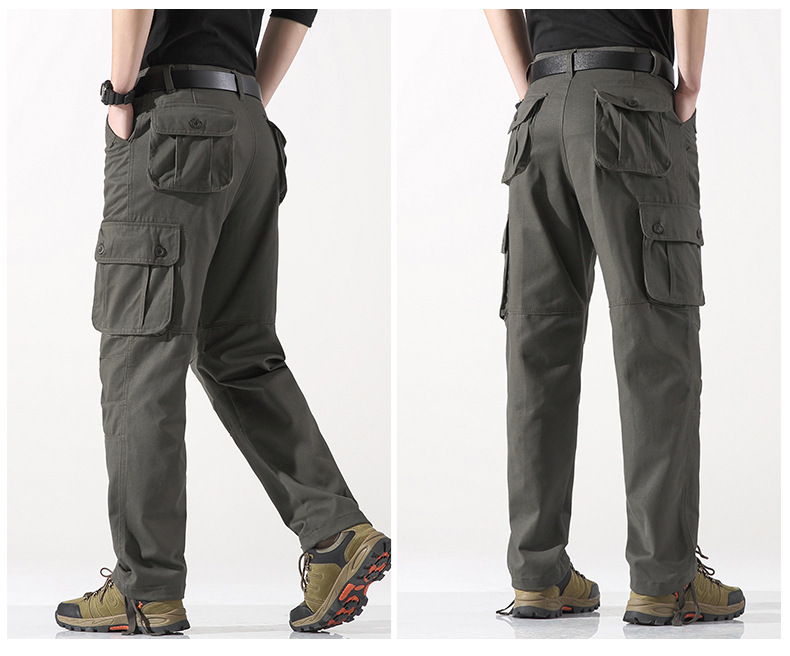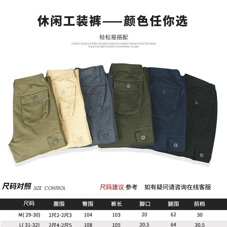대외 무역 싱글면 바지 남성 캐주얼 바지 탄성 허리 대형 바지 멀티 포켓 느슨한 바지 건설 현장 바지스토어 가기