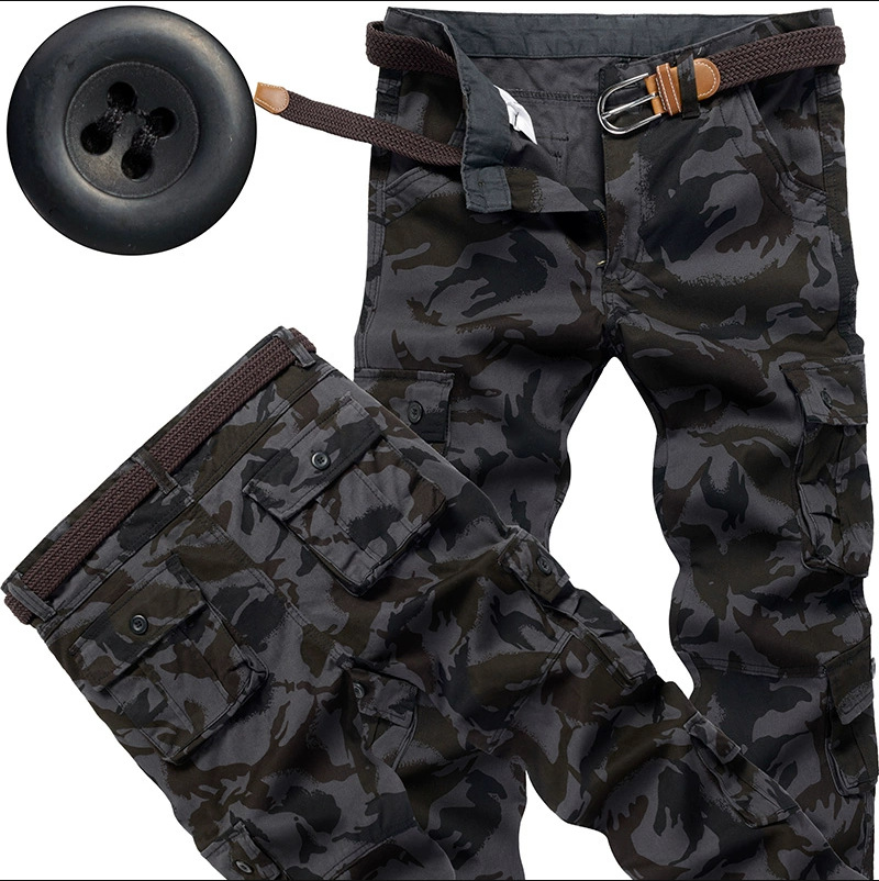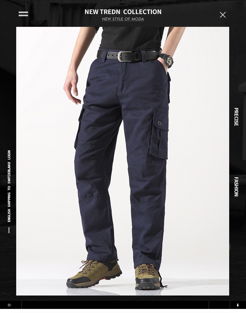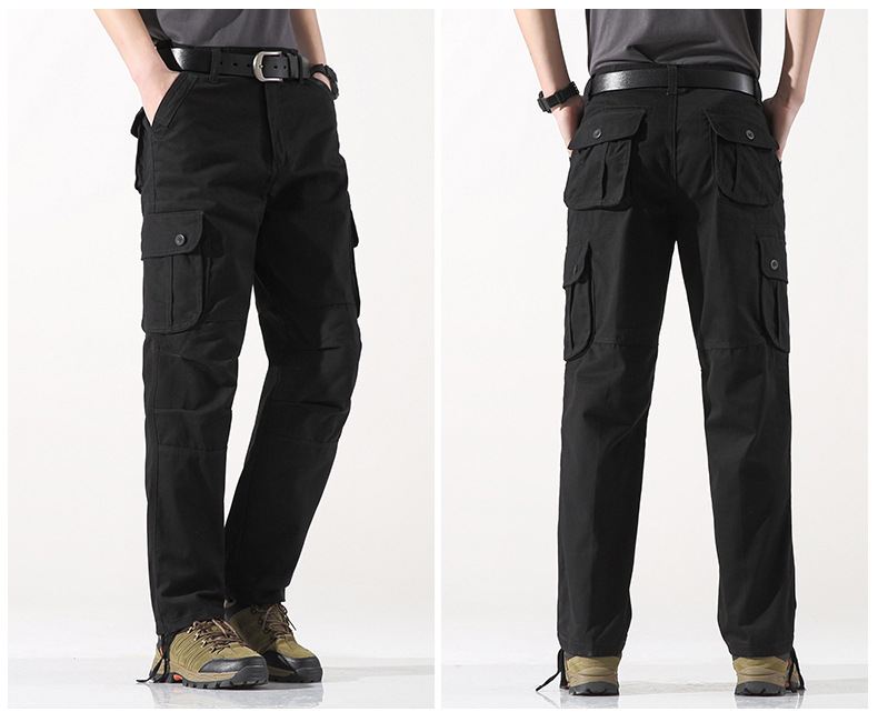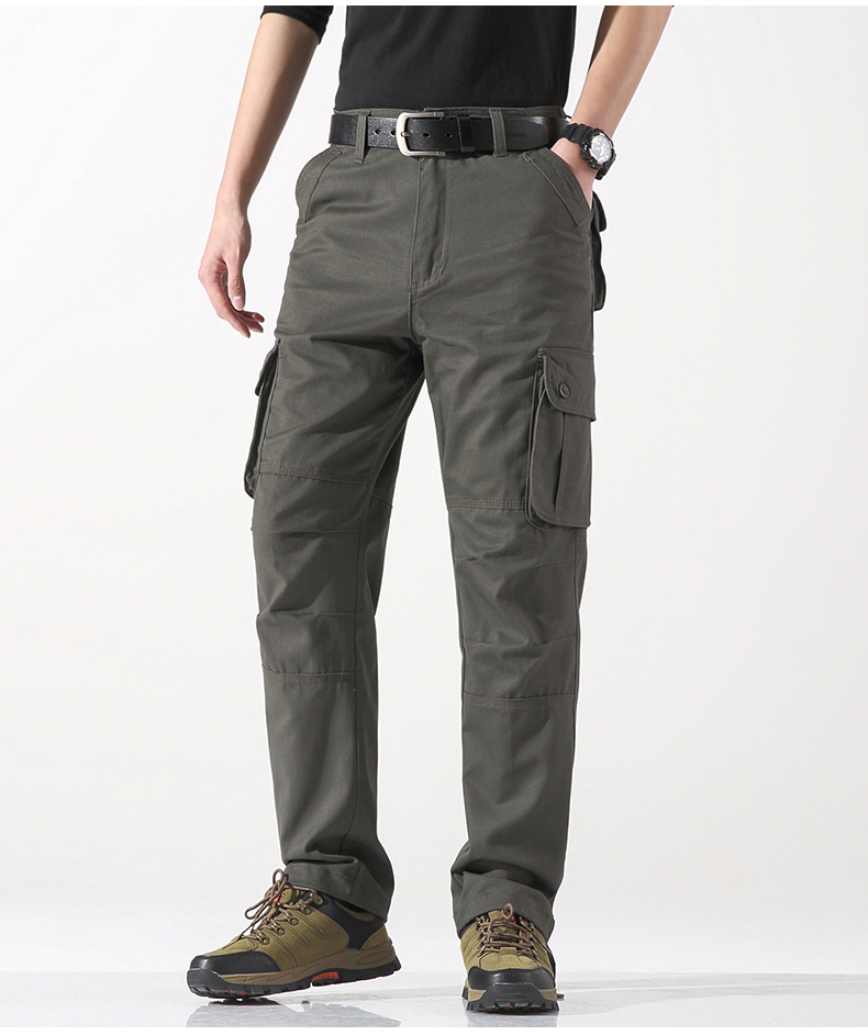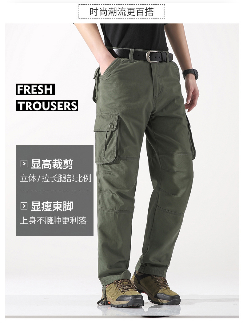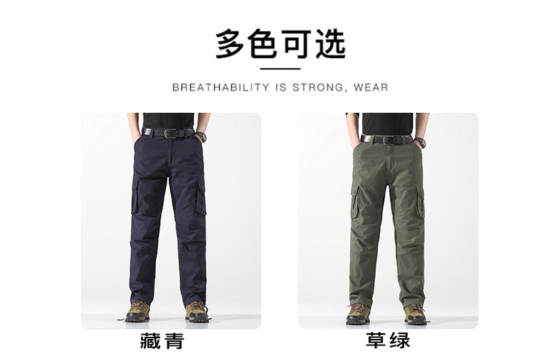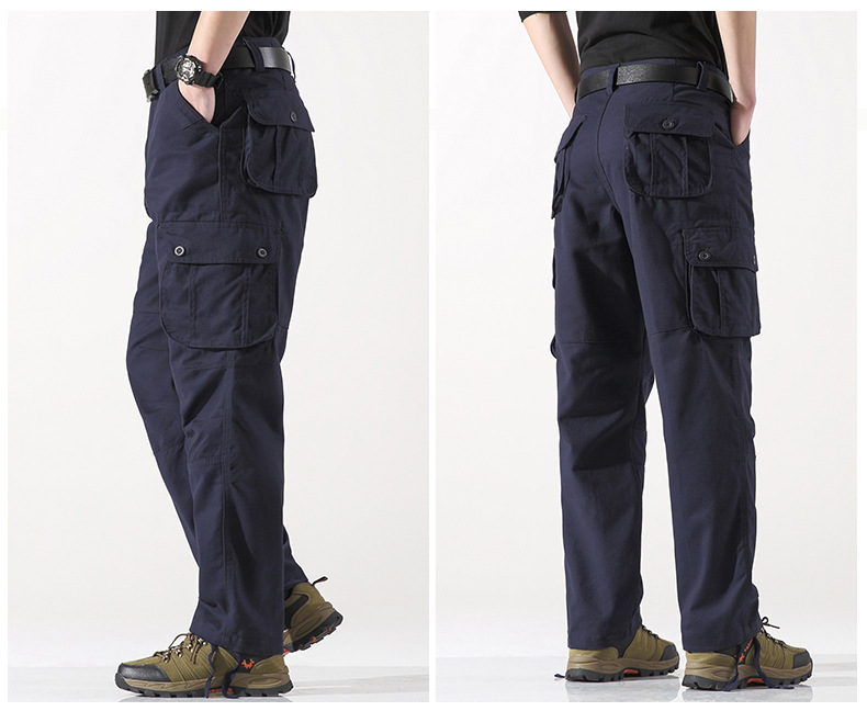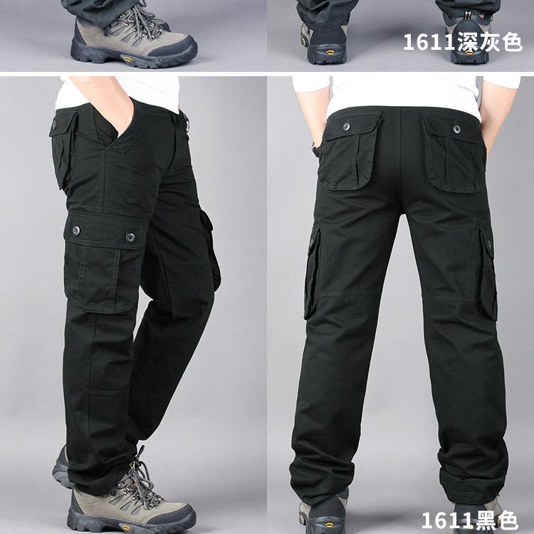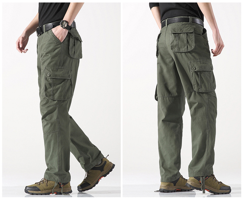 대외 무역 싱글면 바지 남성 캐주얼 바지 탄성 허리 대형 바지 멀티 포켓 느슨한 바지 건설 현장 바지스토어 가기