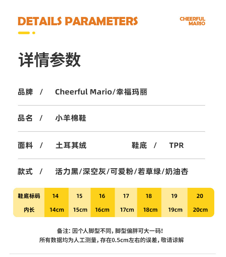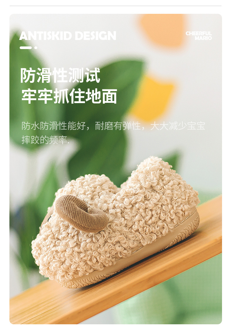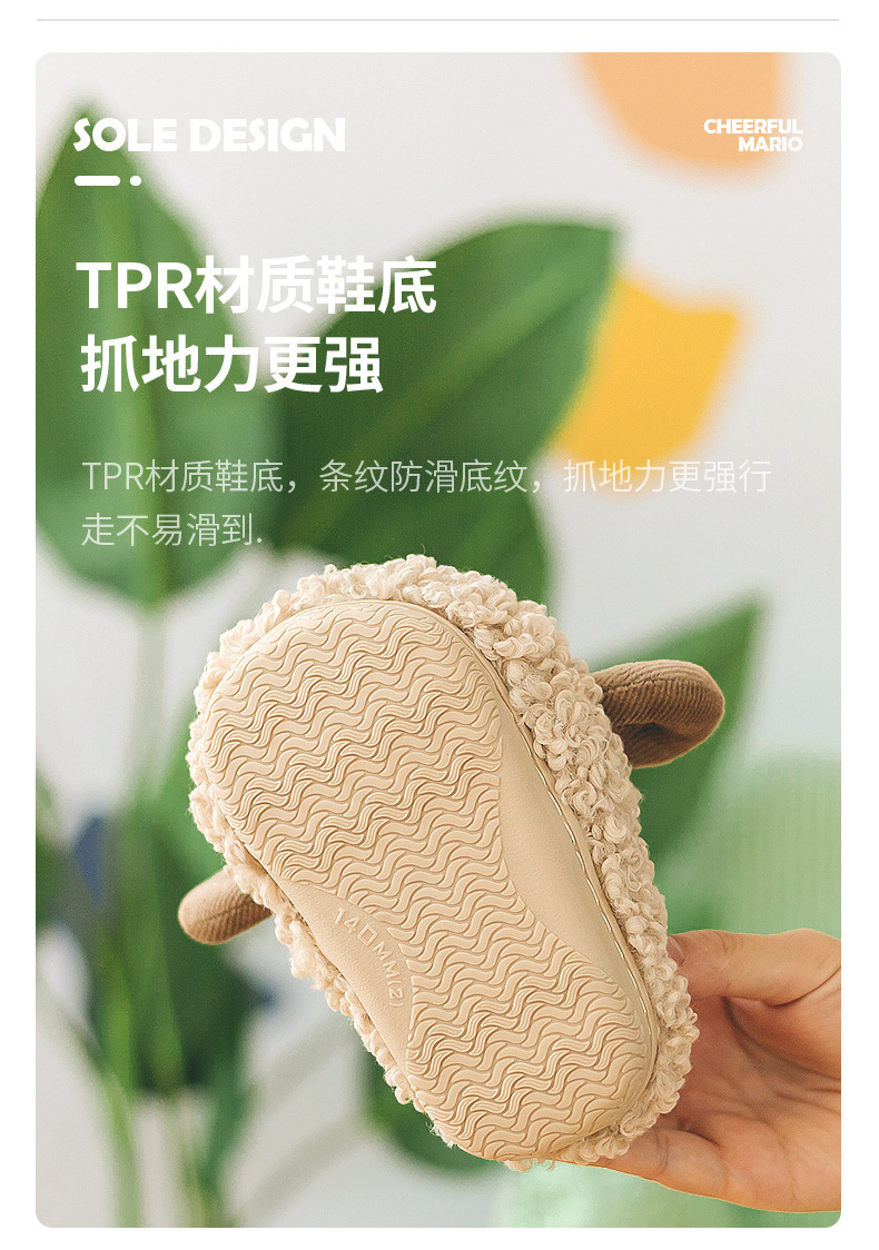 해피 메리 어린이 면 슬리퍼, 가을 겨울 따뜻한 실내용 털 슬리퍼, 귀여운 아기 면 신발스토어 가기