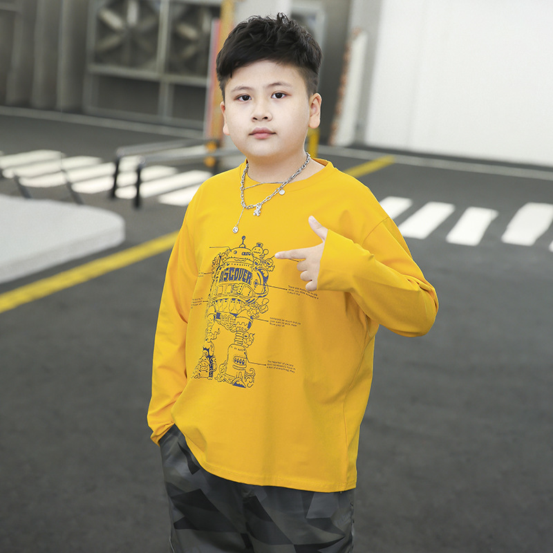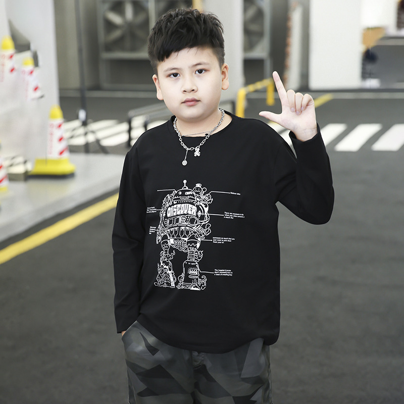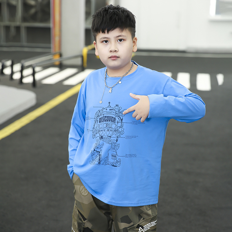 통통한 아동복 봄과 가을 얇은 아동베이스 셔츠 순면 느슨한 초대형 남아 긴팔 티셔츠
