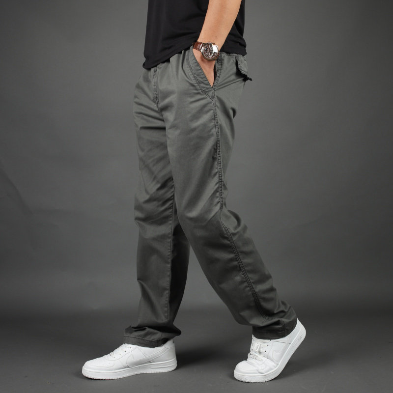 캐주얼 바지 남성 루즈 플러스 사이즈 스포츠 바지 신축성 있는 허리 멀티 포켓 오버올 봄, 가을 워싱 남성 바지 트렌디스토어 가기
