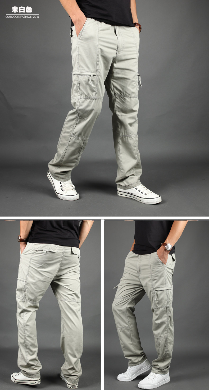 캐주얼 바지 남성 루즈 플러스 사이즈 스포츠 바지 신축성 있는 허리 멀티 포켓 오버올 봄, 가을 워싱 남성 바지 트렌디
