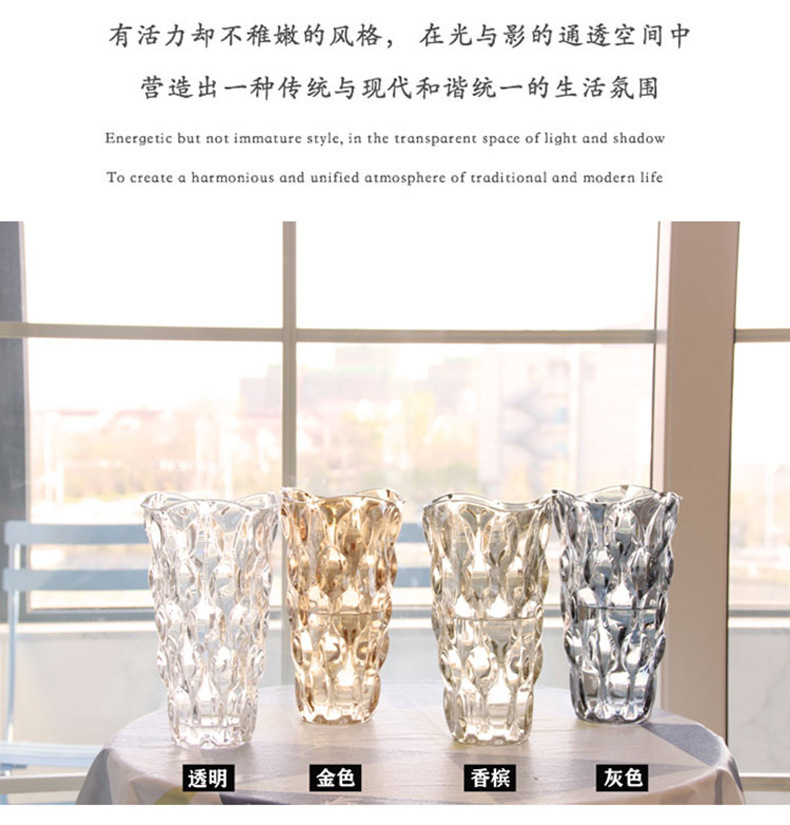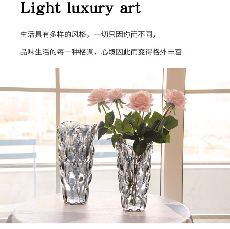 유럽 스타일 라이트 럭셔리 보헤미안 유리 꽃병 높은 색상 값 투명 꽃 용기 거실 꽃 배열 장식품 장식 공예품스토어 가기