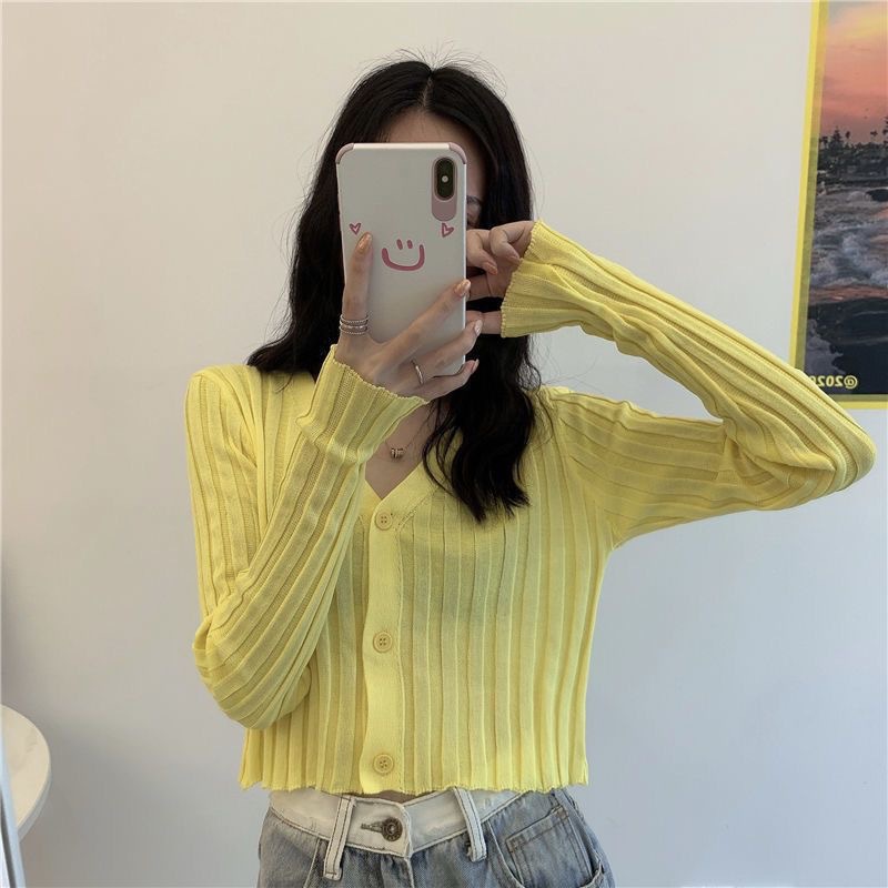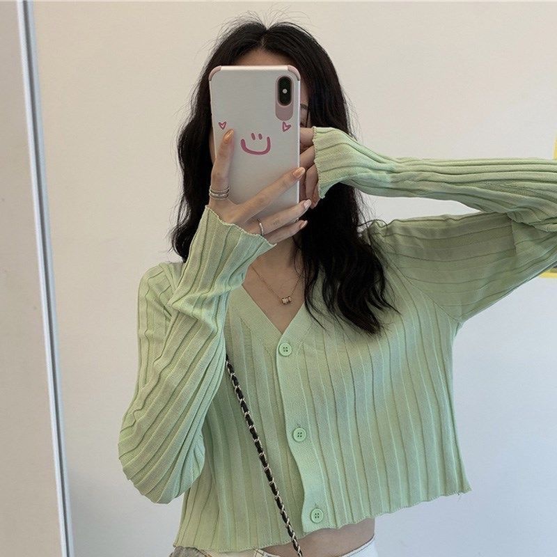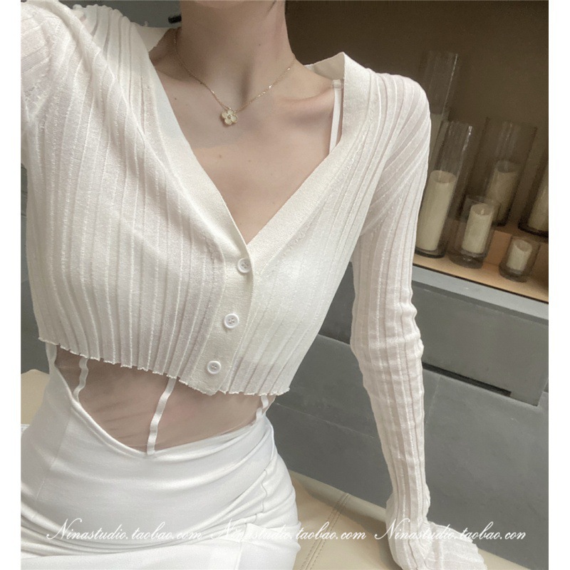 2023 새로운 여름 얇은 흰색 니트 카디건 여성용 외부 자외선 차단제 하이 웨이스트 쇼트 탑 아이스 실크 코트스토어 가기