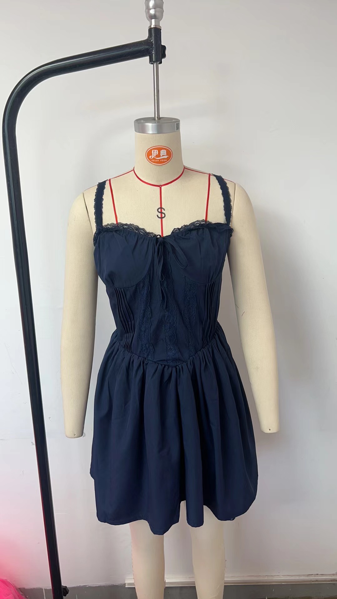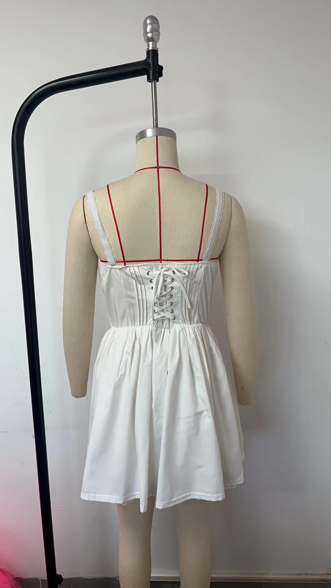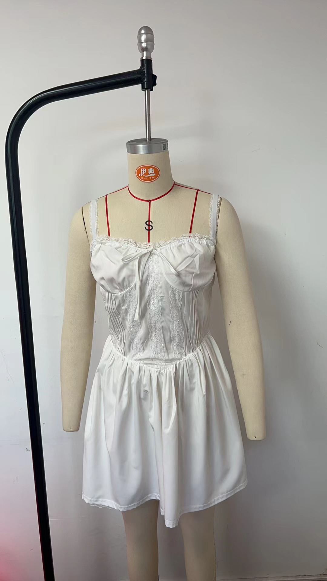 유럽과 미국 섹시한 여자의 레이스 스티치 스트랩 원피스 허리 등이없는 작은 원피스 순수한 흰색 원피스 여성