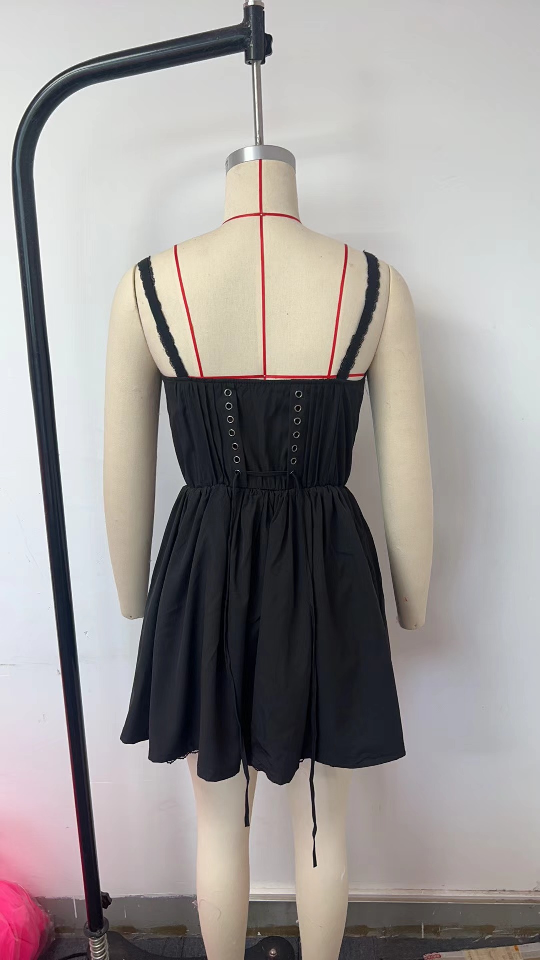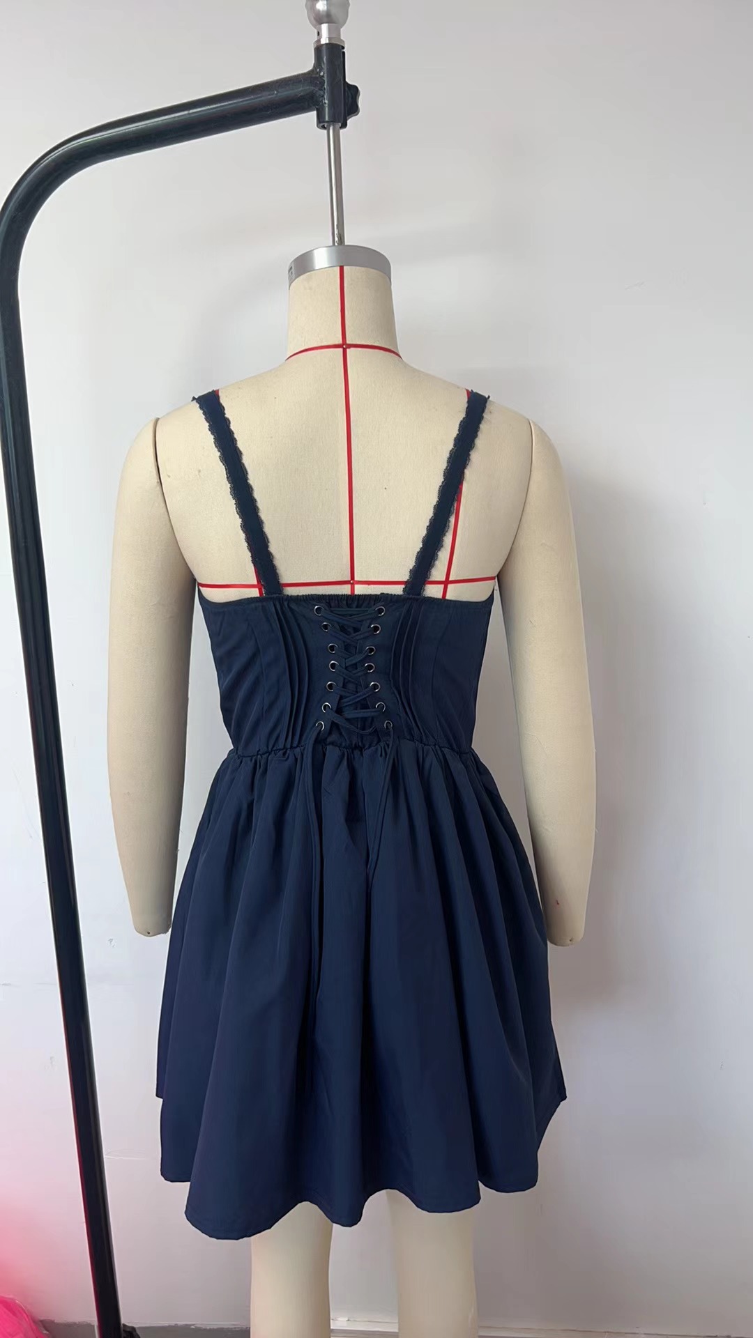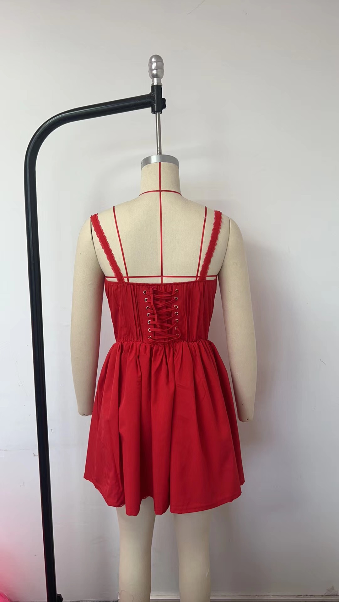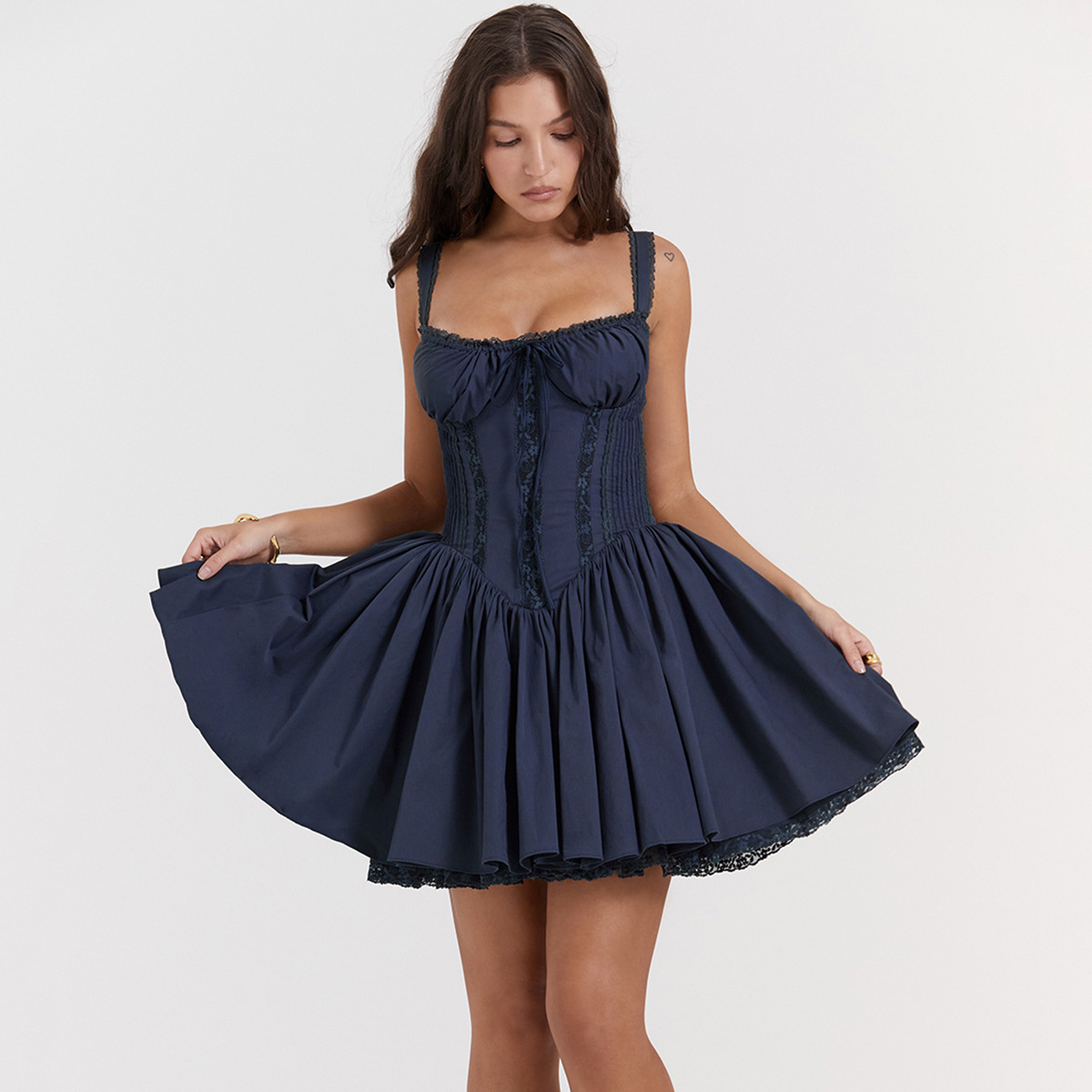 유럽과 미국 섹시한 여자의 레이스 스티치 스트랩 원피스 허리 등이없는 작은 원피스 순수한 흰색 원피스 여성