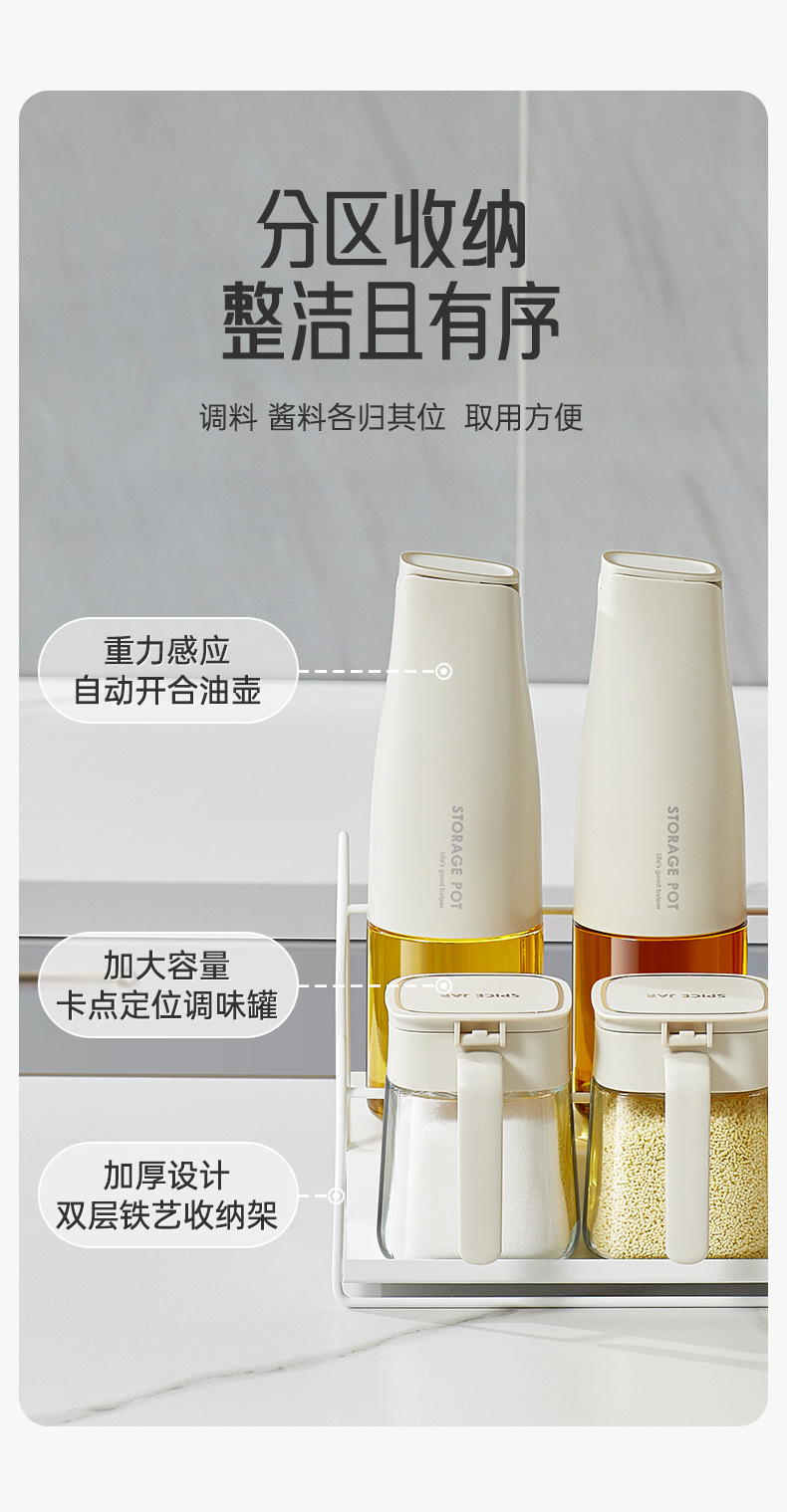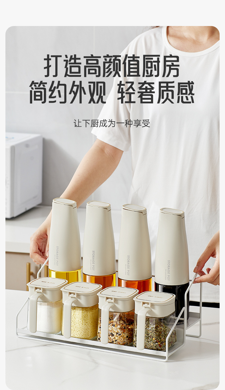 조미료 보관 랙 조리대 주방 보관 랙 더블 레이어 선반 조미료 오일 냄비 소금 통 소스 식초 병 조합 세트