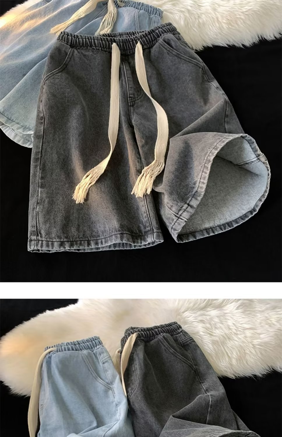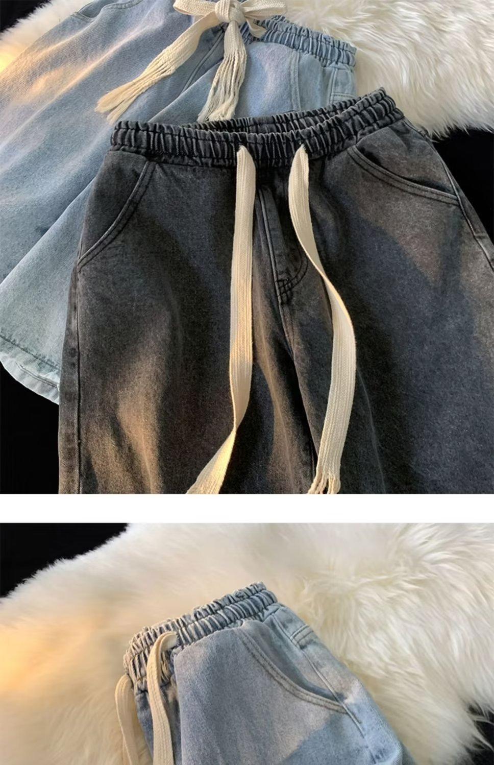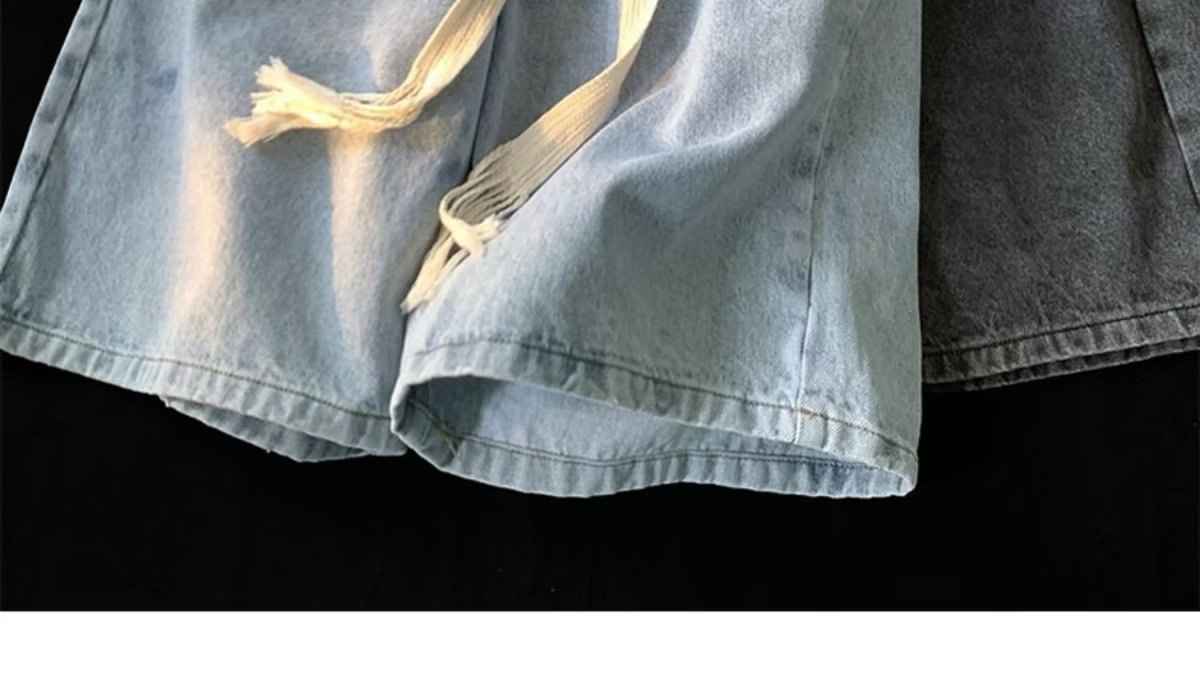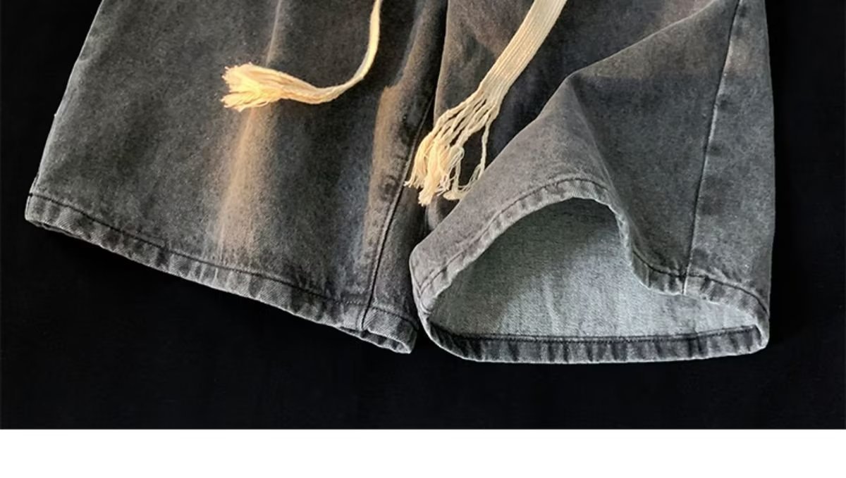 워싱 데님 반바지 남자의 여름 얇은 유행 브랜드 유행 5 점 바지 미국 스타일 복고풍 느슨한 스트레이트 캐주얼 바지스토어 가기