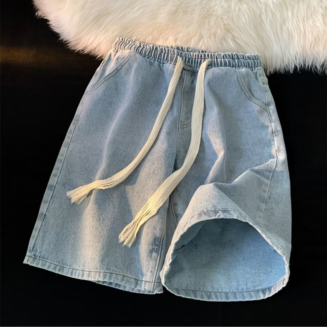 워싱 데님 반바지 남자의 여름 얇은 유행 브랜드 유행 5 점 바지 미국 스타일 복고풍 느슨한 스트레이트 캐주얼 바지
