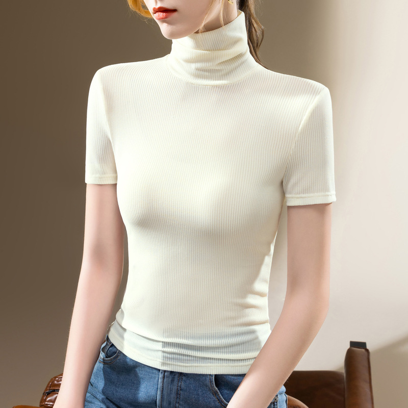 하이 칼라 티셔츠 여성용 2023 새로운 유럽 스타일 여성용 아이스 실크 메쉬 베이스 셔츠 허리 라인 스트레치 우아한 탑