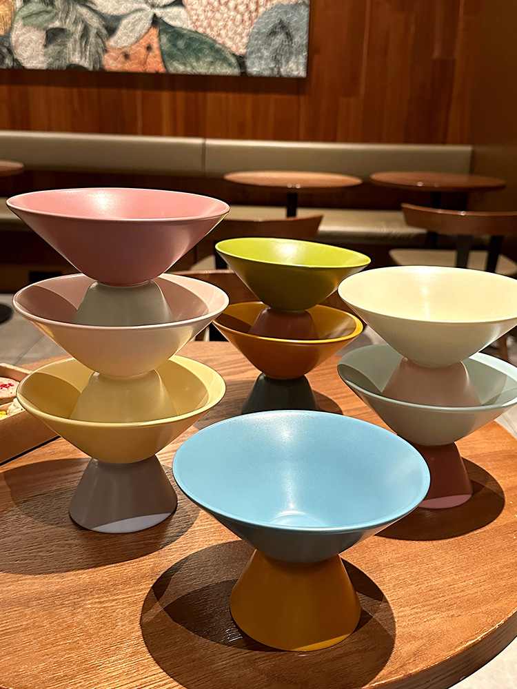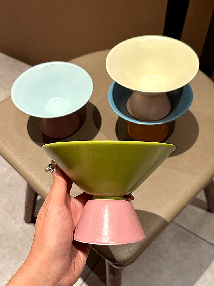 대비 색상 간식 높은 발 그릇 창조적 인 디저트 그릇 세라믹 얼음 가루 그릇 상업용 샐러드 그릇 요구르트 그릇 높은 발 고양이 음식 그릇스토어 가기