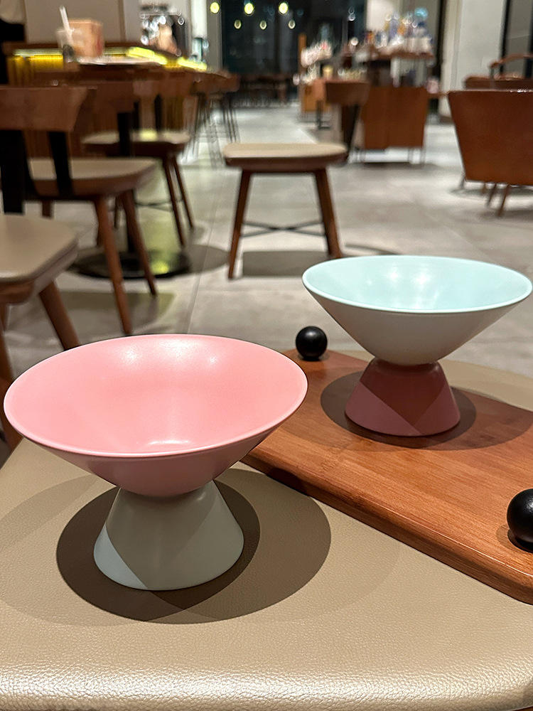 대비 색상 간식 높은 발 그릇 창조적 인 디저트 그릇 세라믹 얼음 가루 그릇 상업용 샐러드 그릇 요구르트 그릇 높은 발 고양이 음식 그릇
