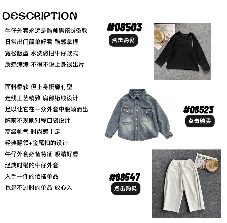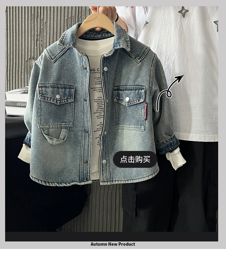 코튼샵 남아 데님 자켓 아동용 2026년 봄 신상 한국 스타일 아기옷 트렌디하고 멋진 아동복 상의스토어 가기