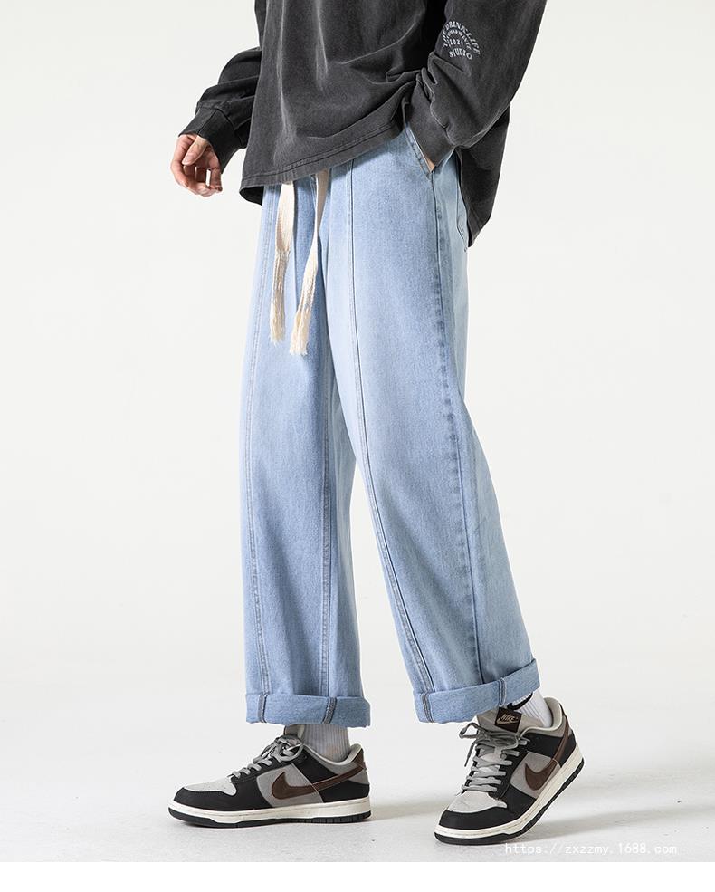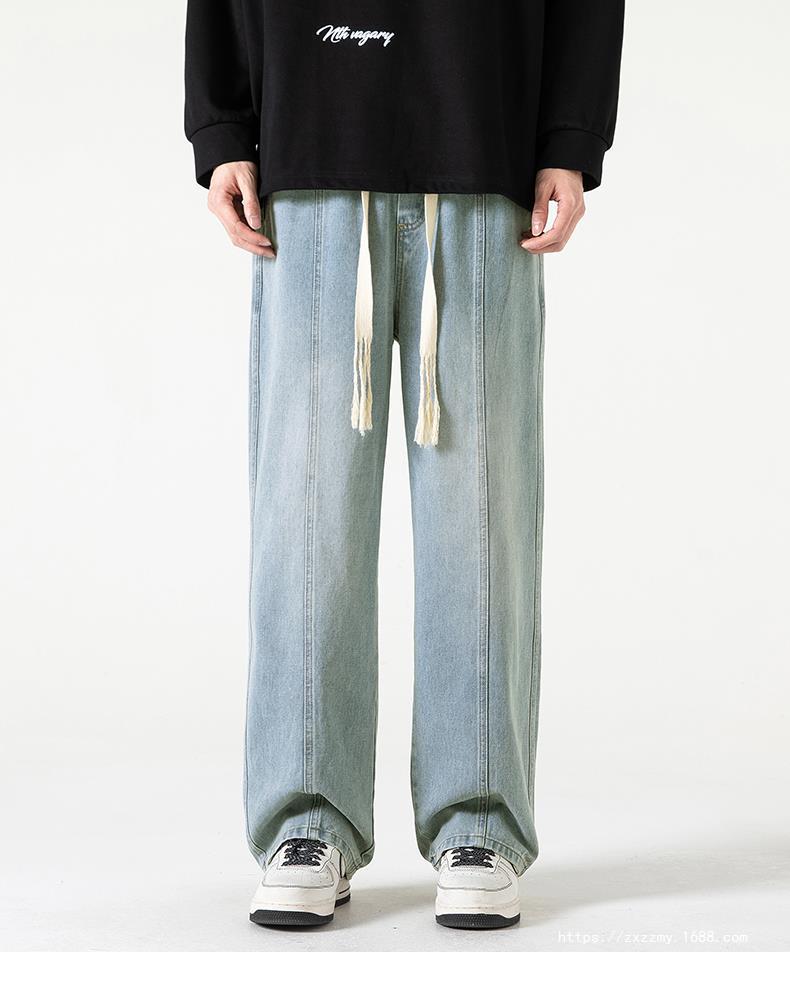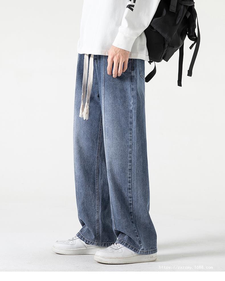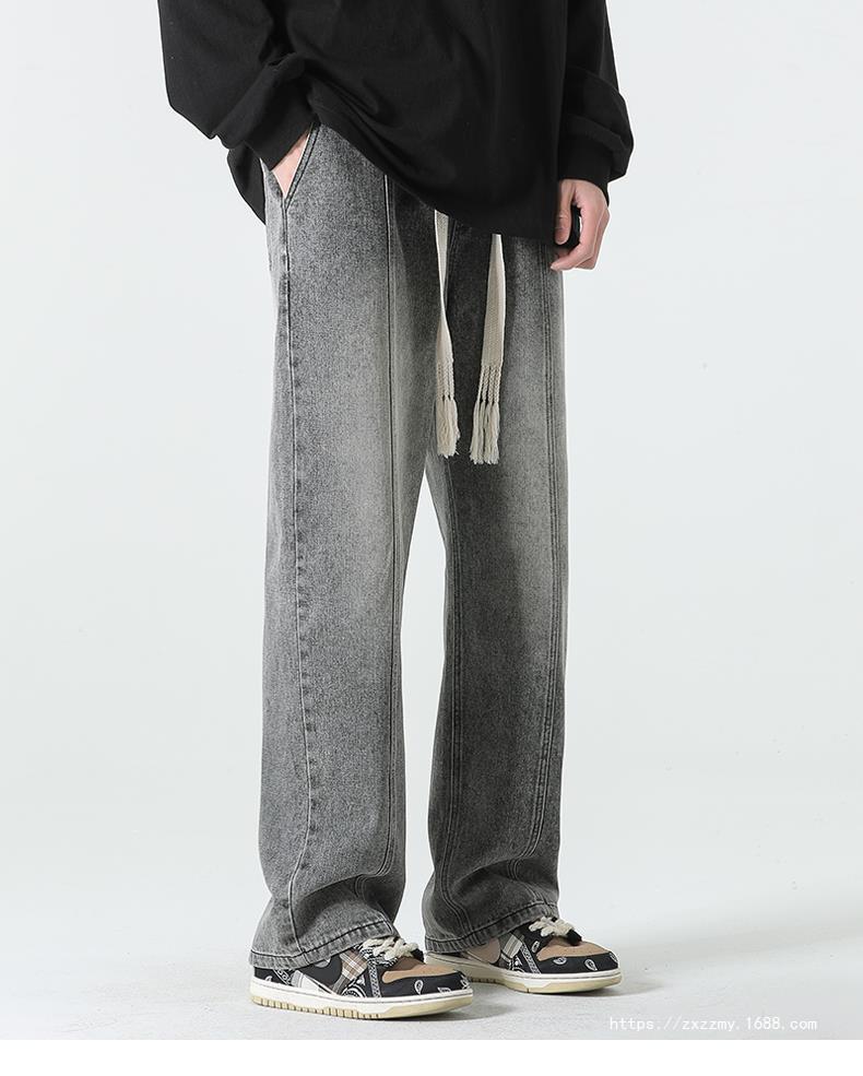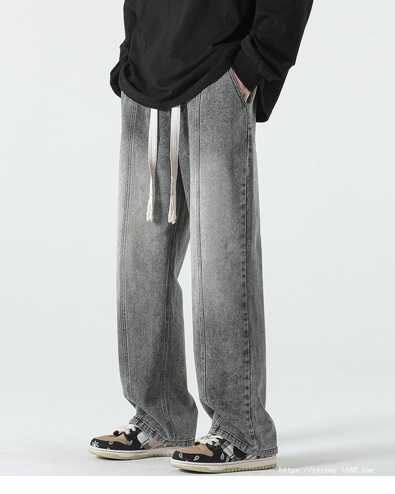 도매 청바지 남자의 2023 새로운 봄과 가을 느슨한 스트레이트 캐주얼 바지 가을 느낌 넓은 다리 바지 잘 생긴 휴식스토어 가기