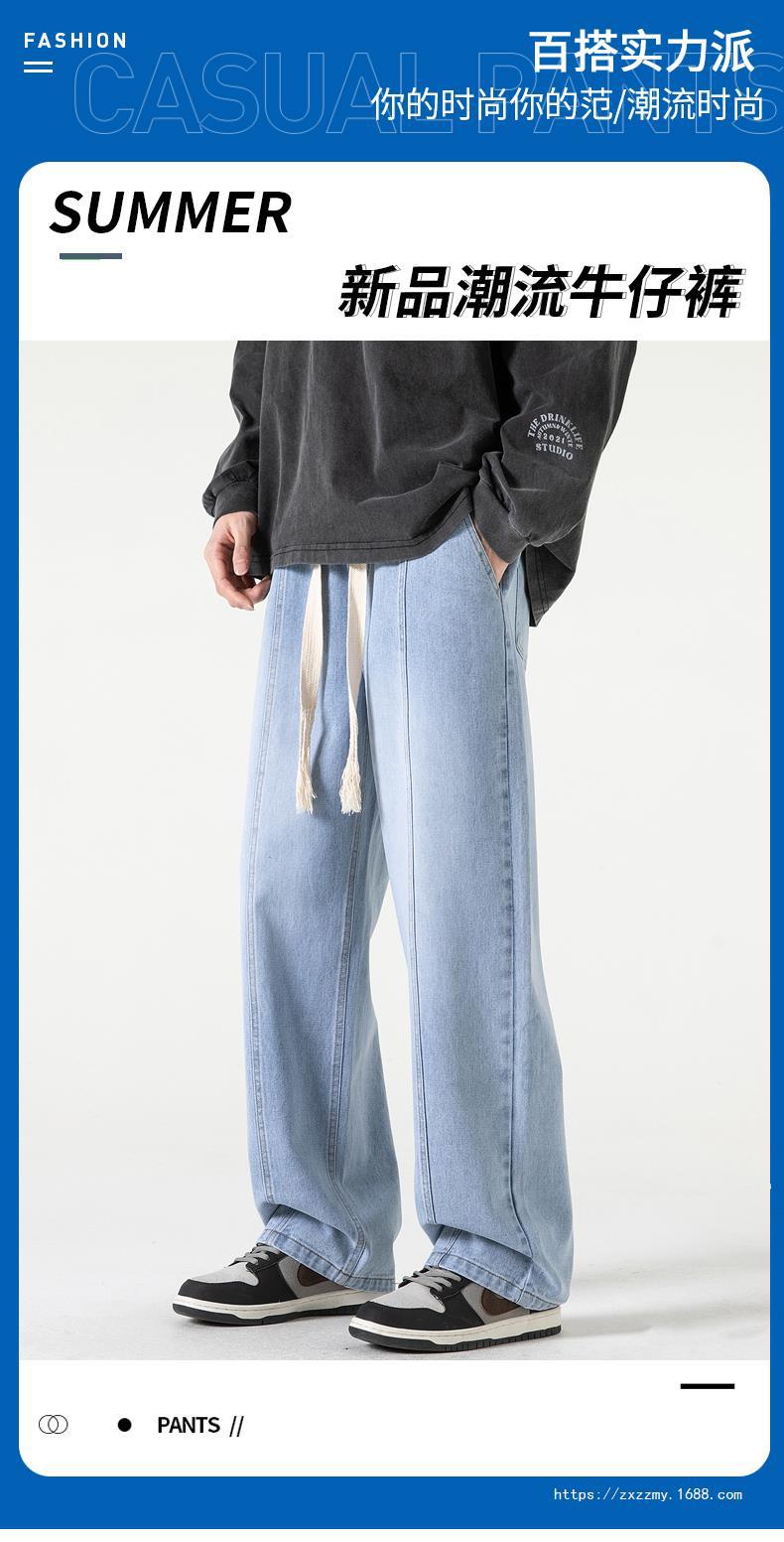 도매 청바지 남자의 2023 새로운 봄과 가을 느슨한 스트레이트 캐주얼 바지 가을 느낌 넓은 다리 바지 잘 생긴 휴식