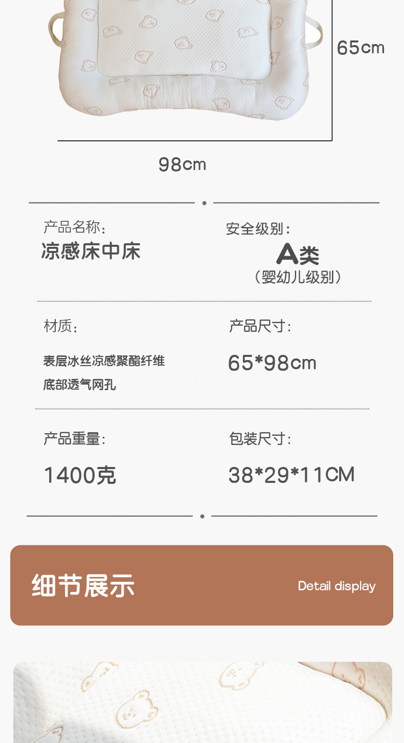 크로스 보더 한국 아기 차가운 느낌 어린이 쿨 매트 쿨 베개 통기성 메쉬 표면 낮잠 매트리스 여름 소프트 매트 낮잠 매트스토어 가기
