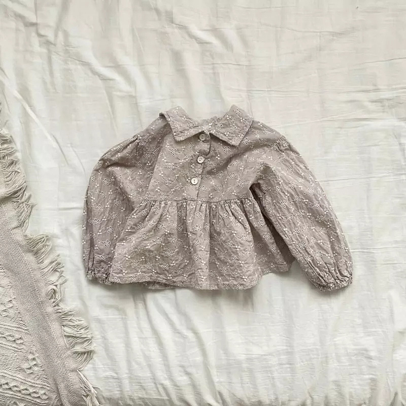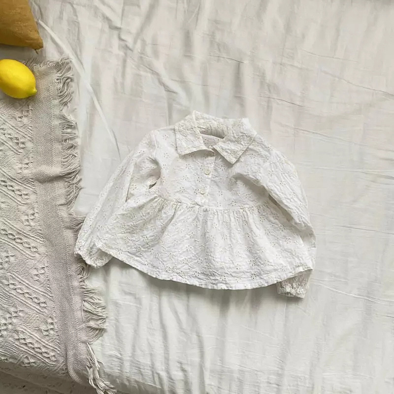 2024 가을 한국 아동복 새 여자 수 놓은 패치 워크 셔츠 탑 아기 소녀 셔츠 어린 소녀 탑스토어 가기