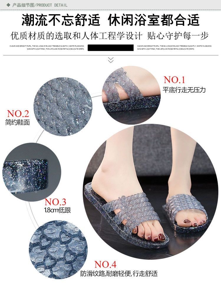 플랫 슬리퍼 크리스탈 슬리퍼 여름 여성용 통기성 부드러운 바닥 편안한 겉옷 홈 욕실 미끄럼 방지 탈취제 슬라이드 걸레